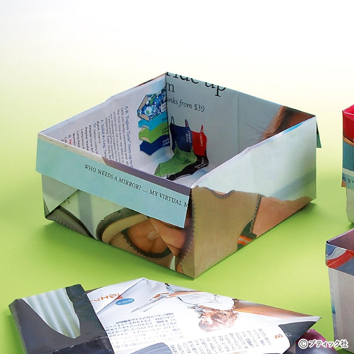 新聞紙から作るごみ箱はとっておきのリサイクル雑貨。ごみを入れた後は、箱ごと捨てられるのでエコな上に便利さにも定評があります。