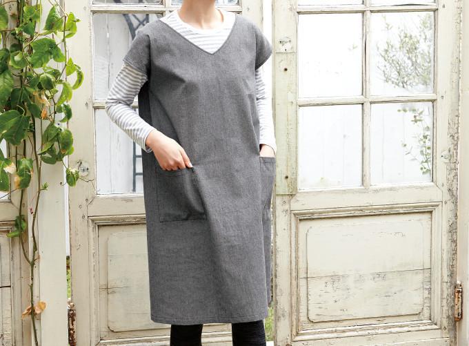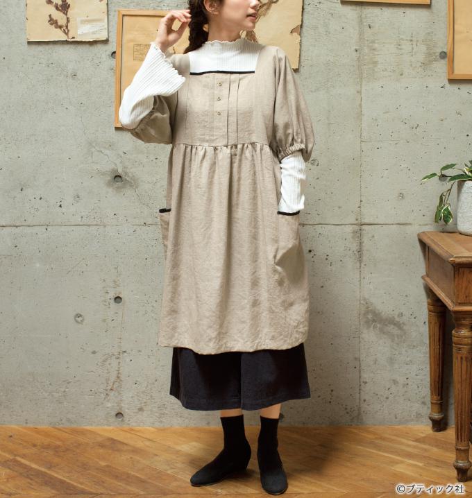 リネン素材を使ったレトロなデザインは、毎日の忙しい家事をおしゃれに楽しませてくれそう♪ナチュラルなファッションが好きな方におすすめの作品です。