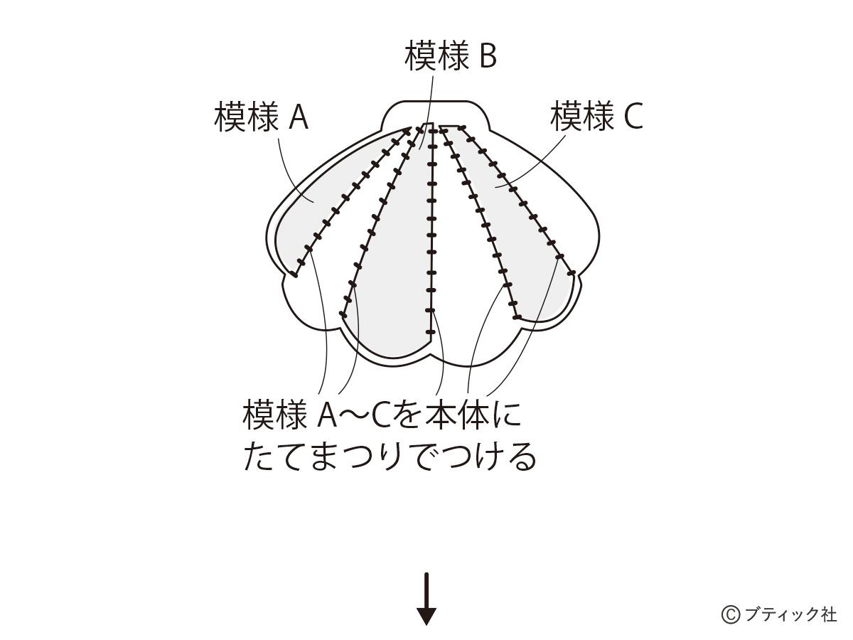 針に刺しゅう糸を通し、下から各パーツをつなげる