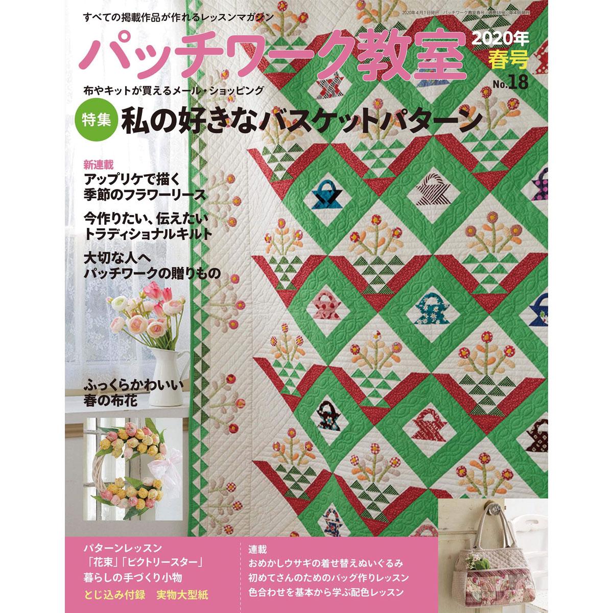「パッチワーク教室2020年春号」では、今回紹介したレシピ以外にもたくさんのパッチワーク作品のレシピをわかりやすく丁寧に紹介しております。