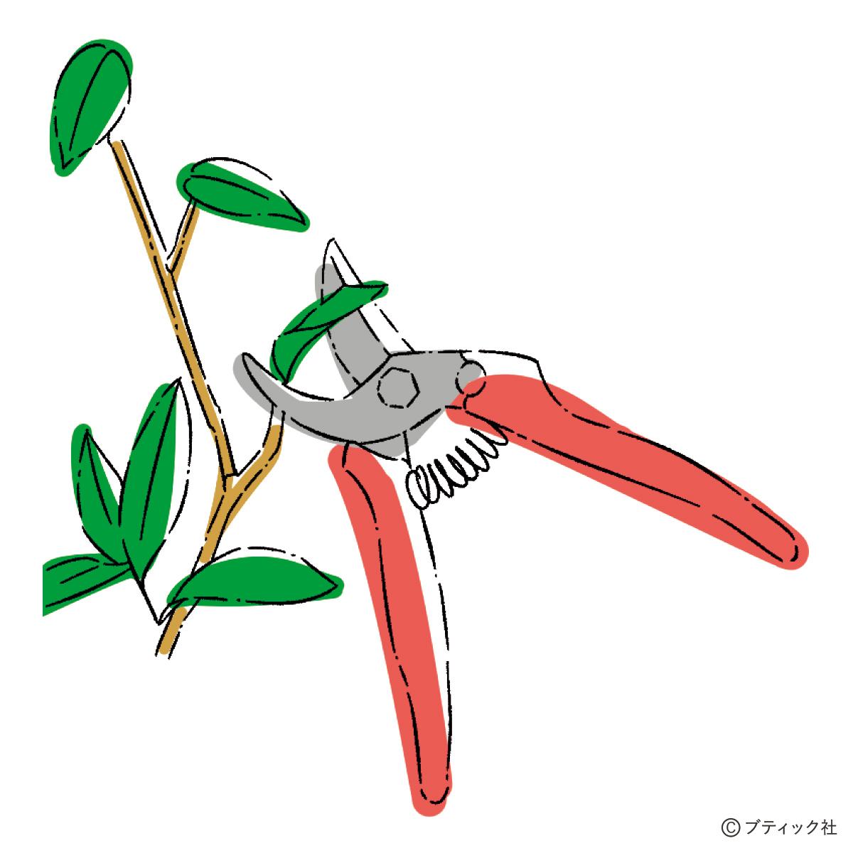 古葉や伸びた枝は生長期の春から夏に剪定し、新陳代謝を促します。剪定せずに育てると、新芽が出づらくなったり樹形が乱れたりして不格好になります。剪定で樹形を整え、良い新芽を出してあげることがポイント。
