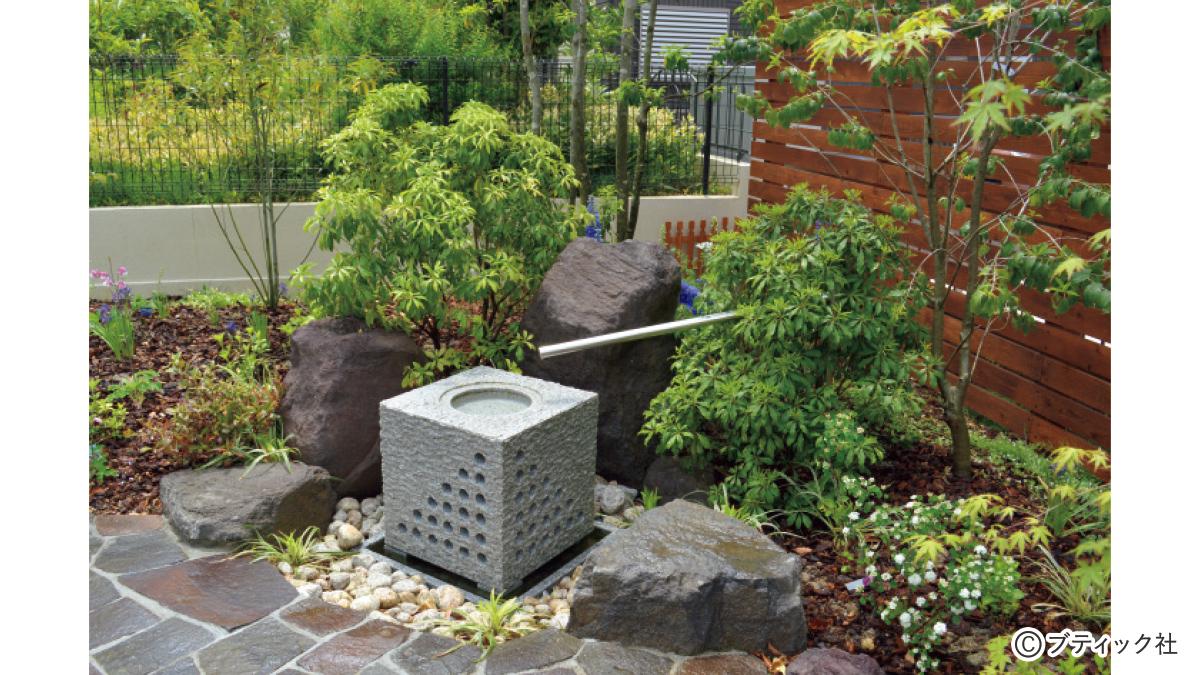■ポイントの手水鉢を存在感を持たせながら風合いが出るようにデザイン。写真提供=direct和