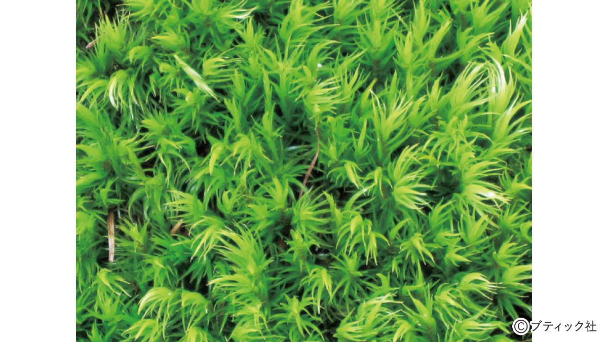 シッポゴケ科のカモジゴケは、日陰で生育し、緑が濃いことが特徴です。