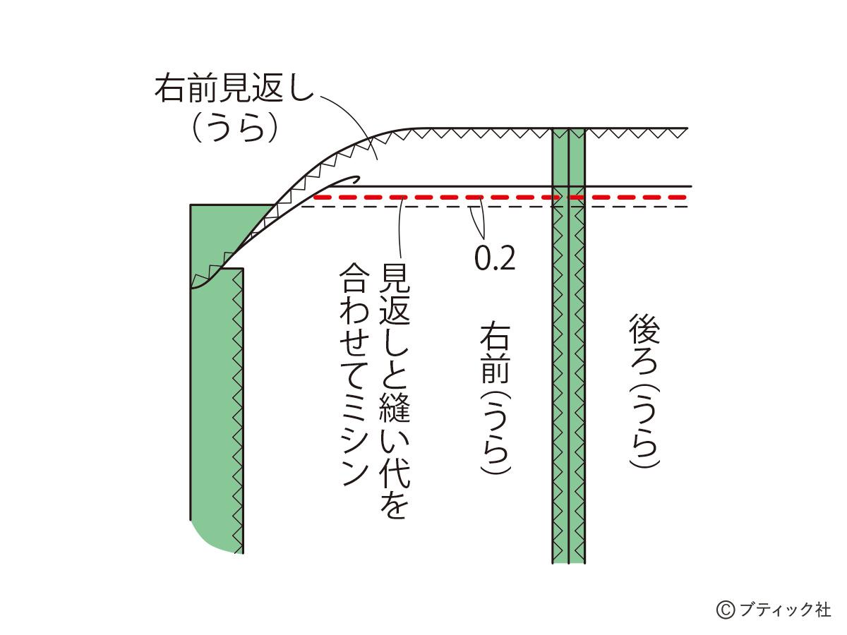 ②裁ち端にジグザグミシンをかける。(前端・脇線・見返し)