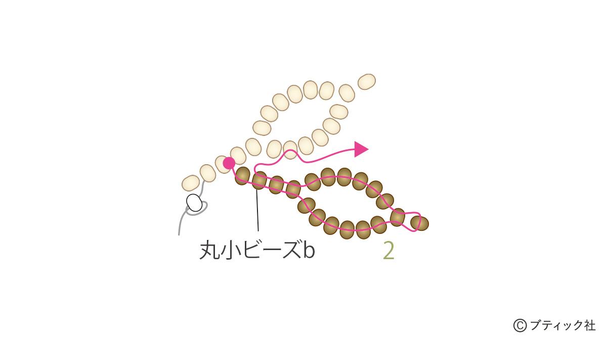 02 丸小ビーズbで葉を作る。