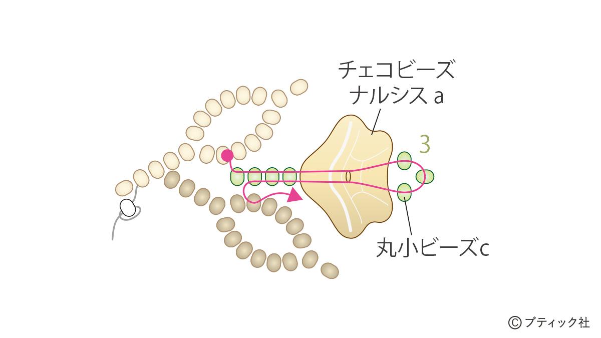 04 丸小ビーズcで葉を図のように作る。