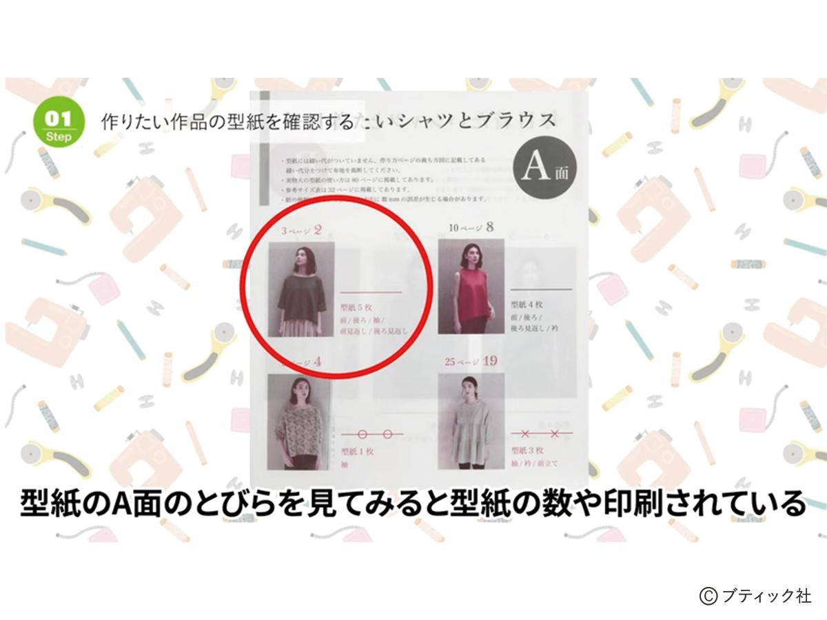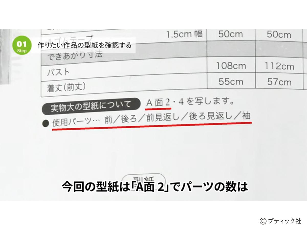型紙のA面の扉を見てみると型紙の数や印刷されている線の色などが確認できるので必ずチェックしましょう。