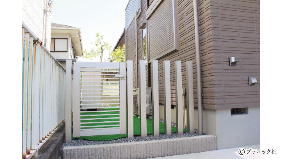 ③お庭へ続く側庭の入り口には門扉を取りつけて、防犯性を高めています。