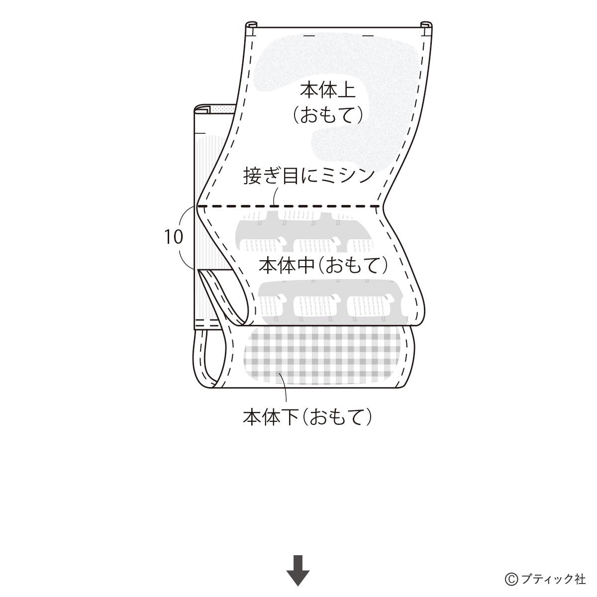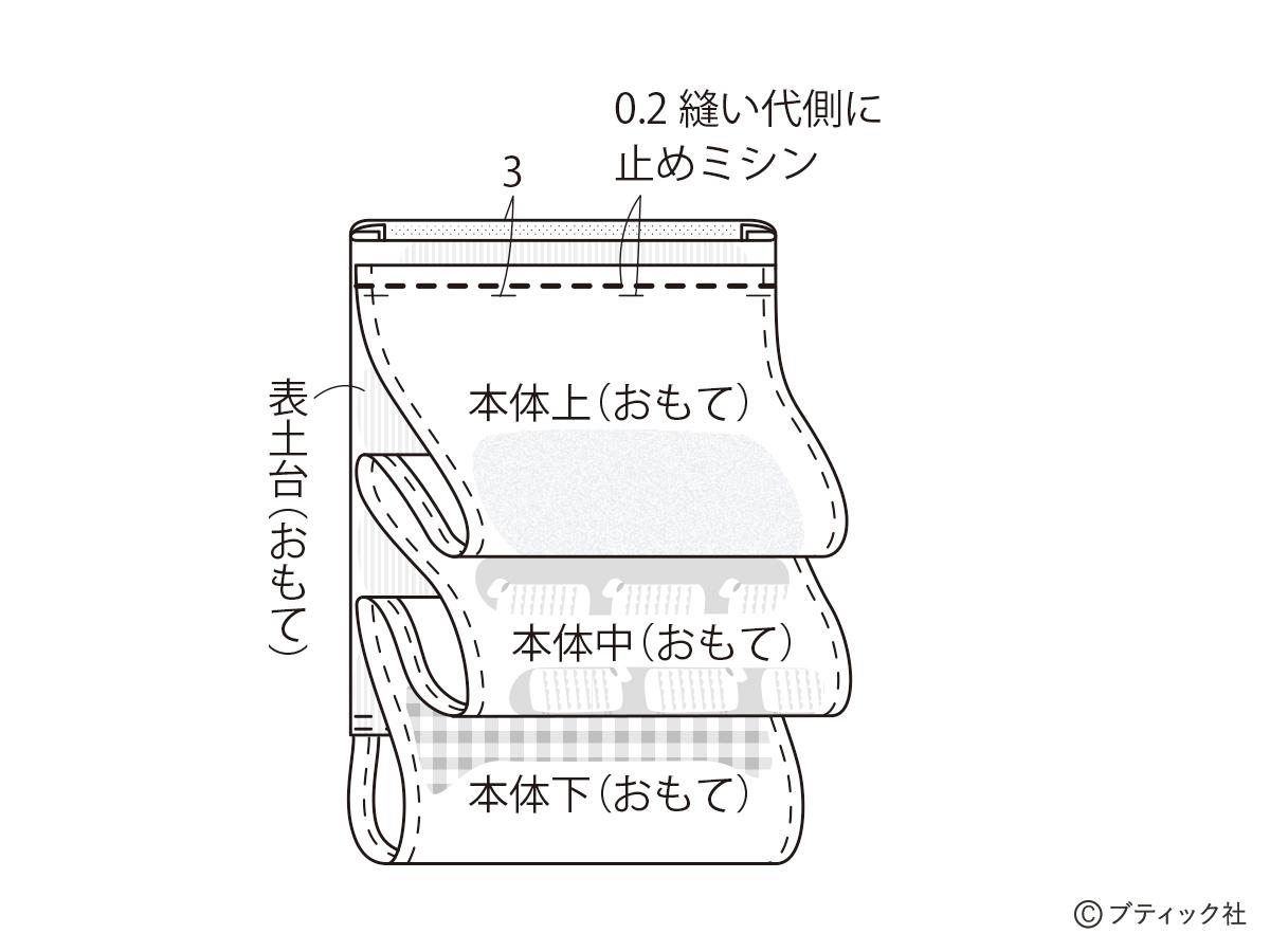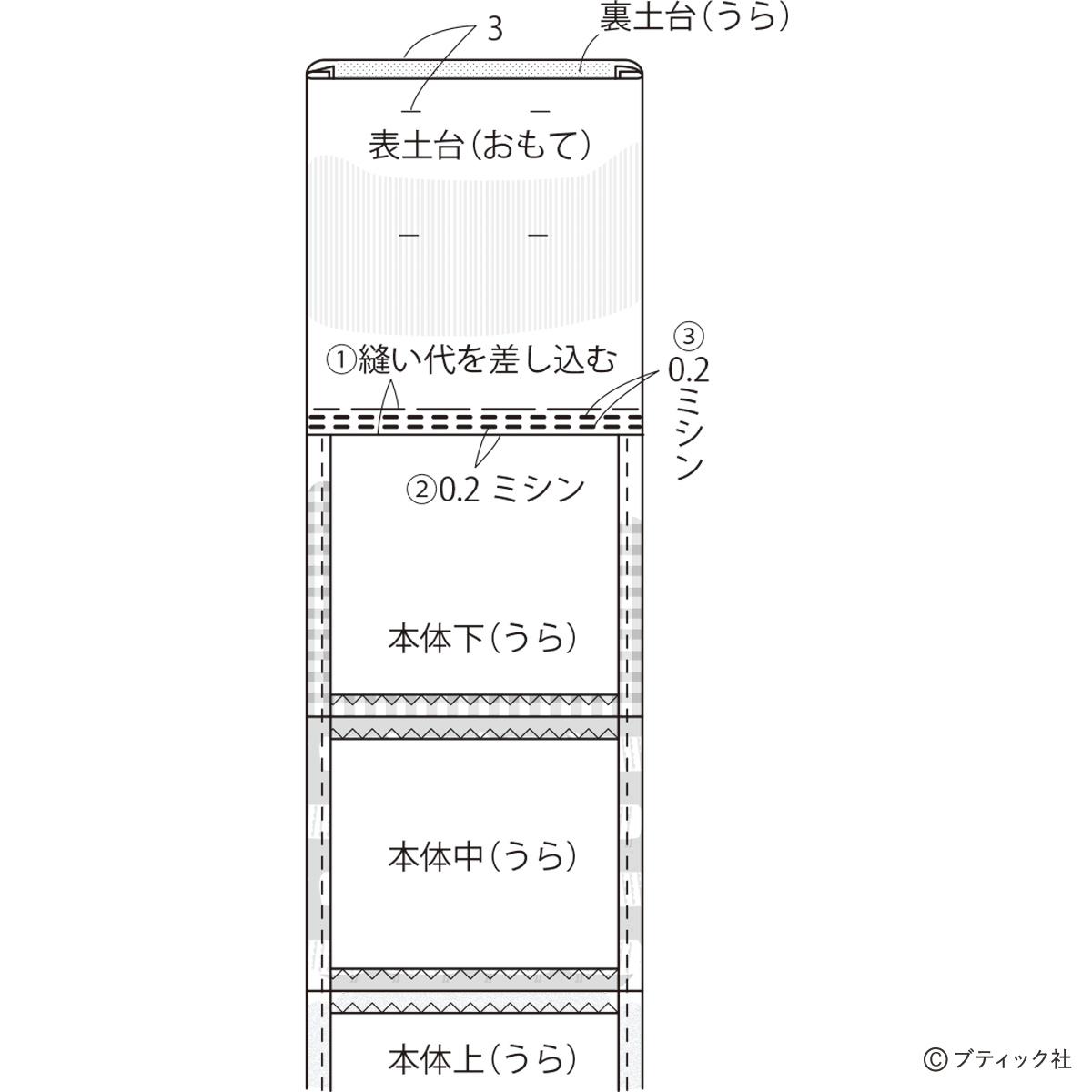 01 本体上・中・下を縫い合わせる。