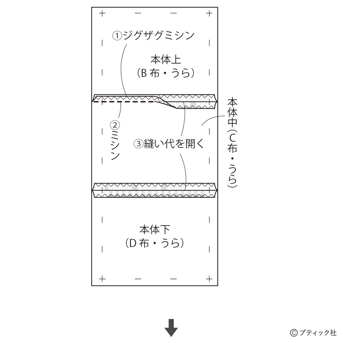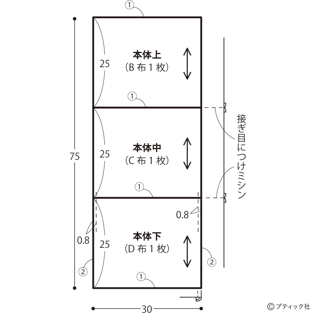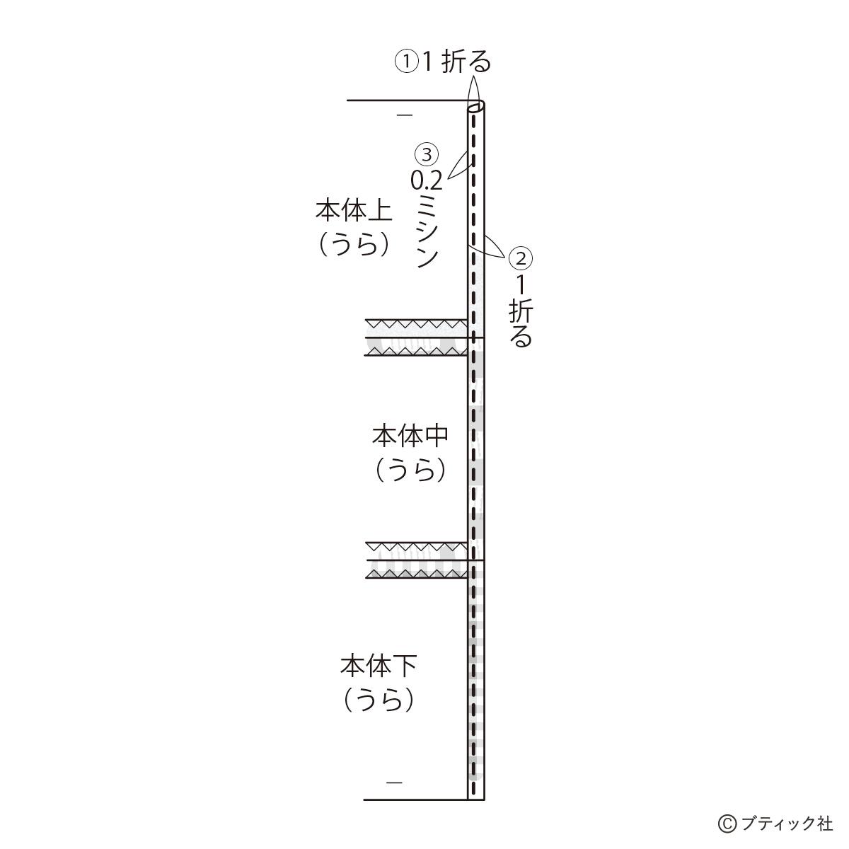 01 本体上・中・下を縫い合わせる。