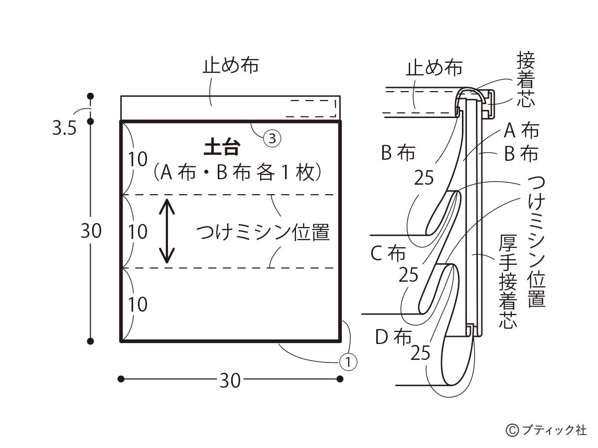 (厚手接着芯は裁ち切り)