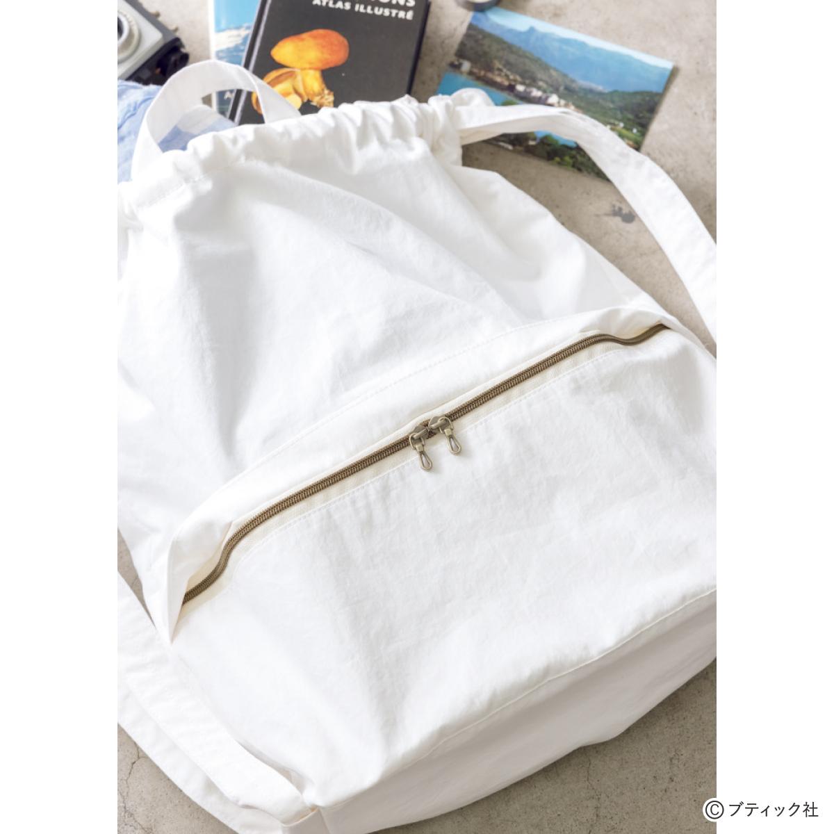 両開きファスナー付きの外ポケットは、開閉しやすい使いやすさがポイント。