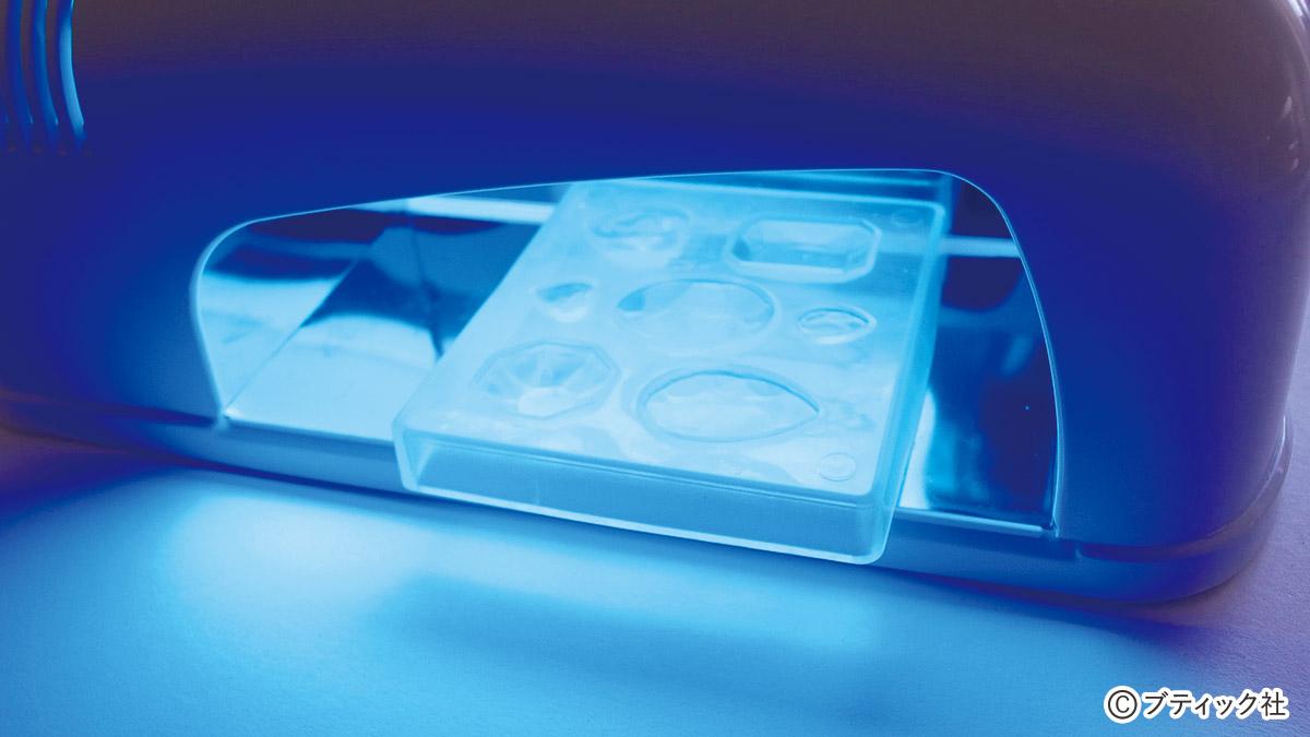 3 モールドをUVライトに入れて、2分ほど照射して硬化させます。