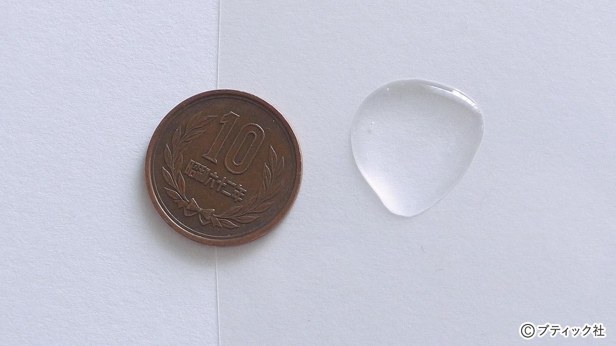 4 クリアファイルをパレットにして、10円玉大にレジン液を出します(片耳分の分量です)。