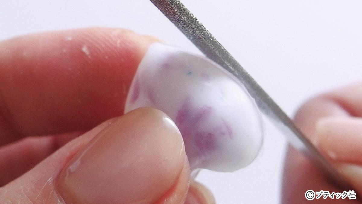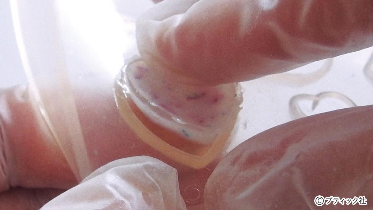 12 モールドの下から押し出すようにはずします。硬化直後は熱くなっているので、冷めたのを確認してから取り外して。