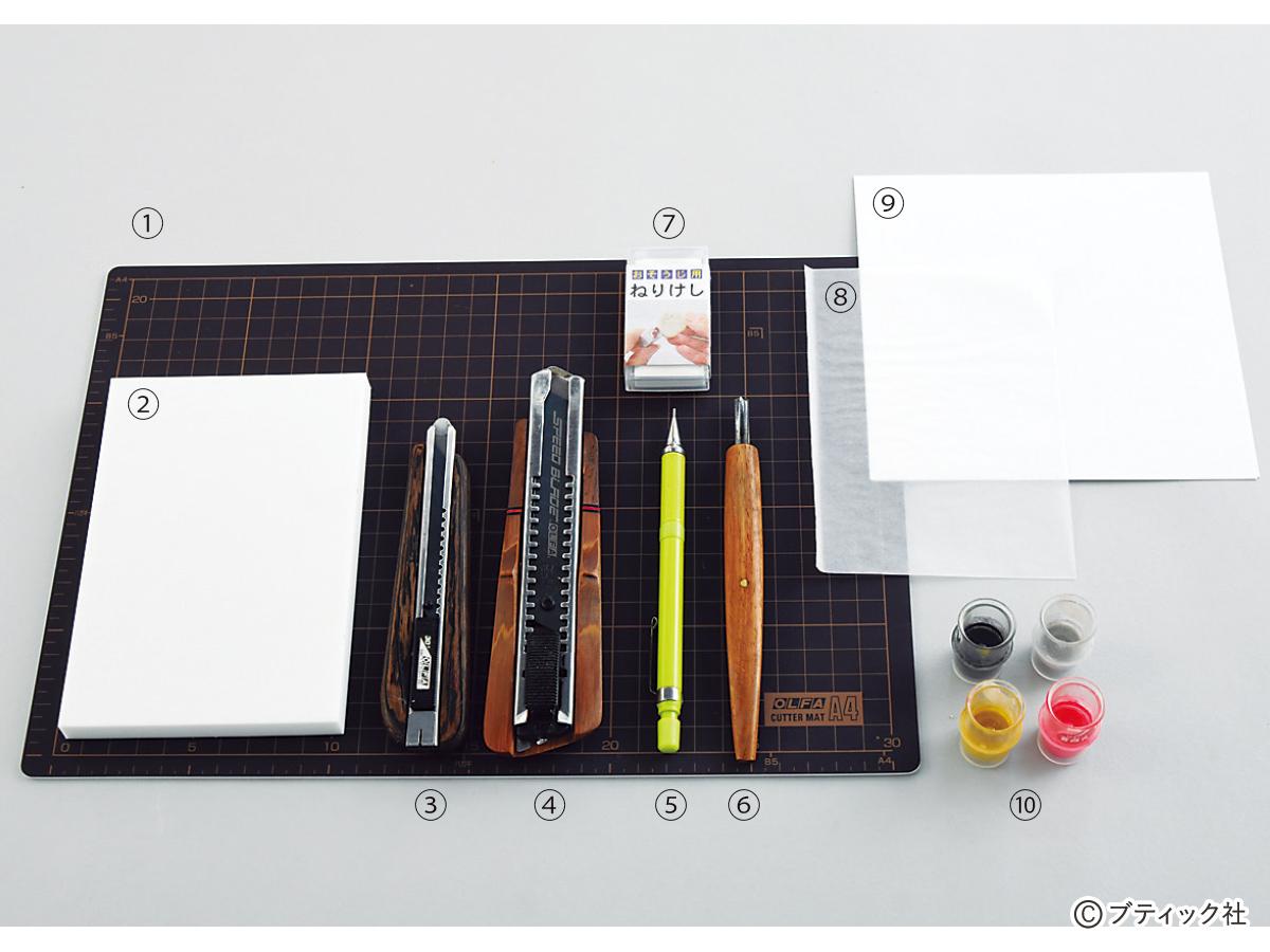 ②消しゴム:はんこ専用に売っている消しゴムを使うのがおすすめ。