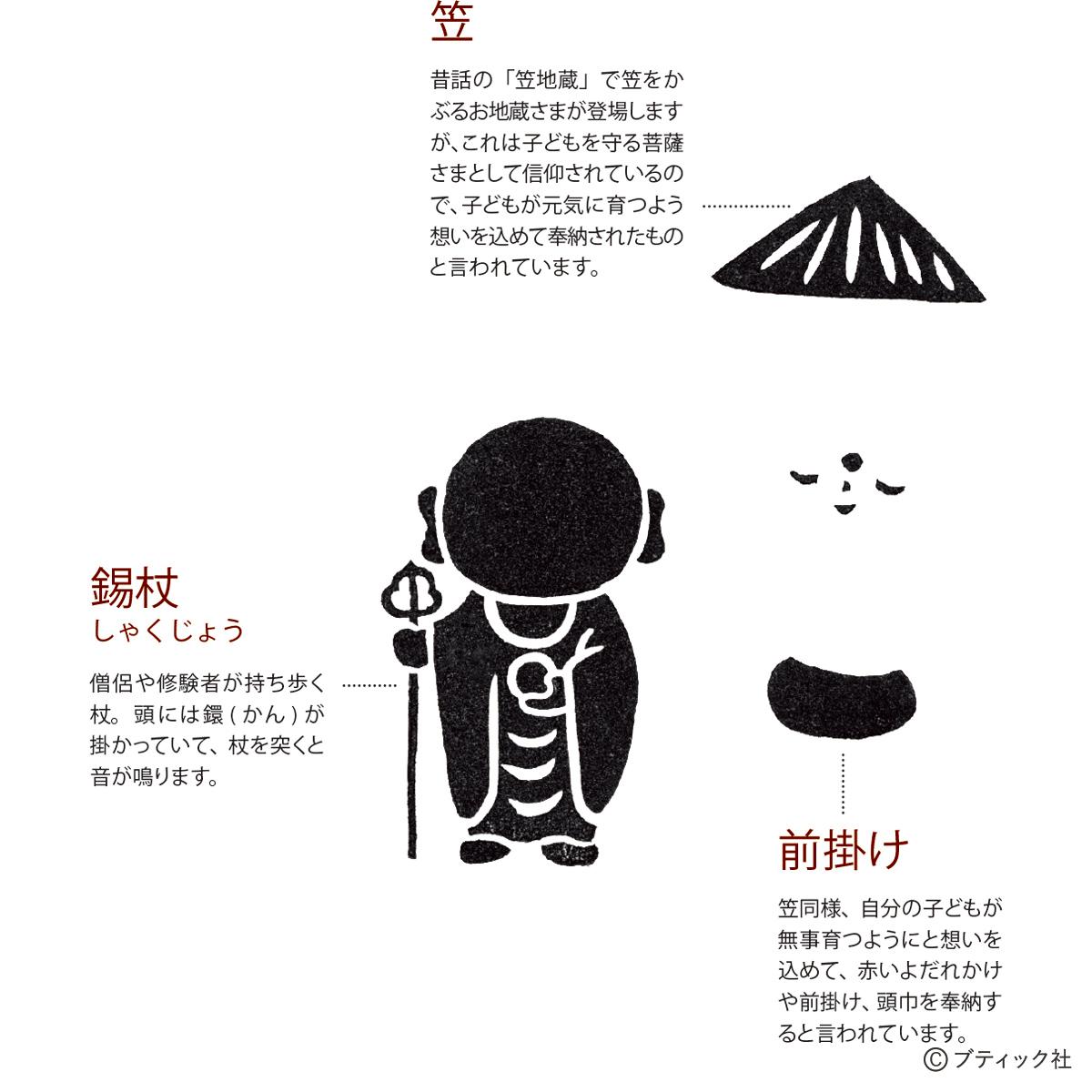 笠同様、自分の子どもが無事育つようにと想いを込めて、赤いよだれかけや前掛け、頭巾を奉納すると言われています。