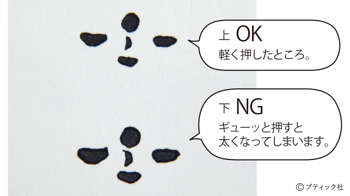 04 顔を押します。頭の下の方に配置すると可愛くなります。
