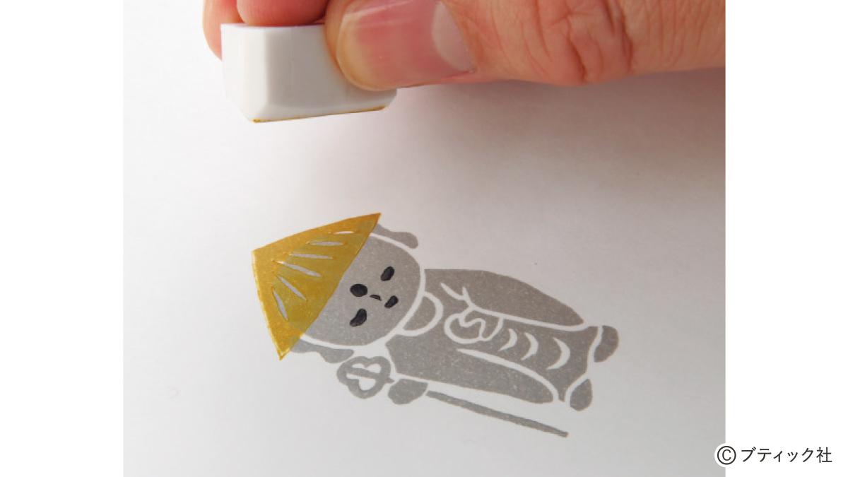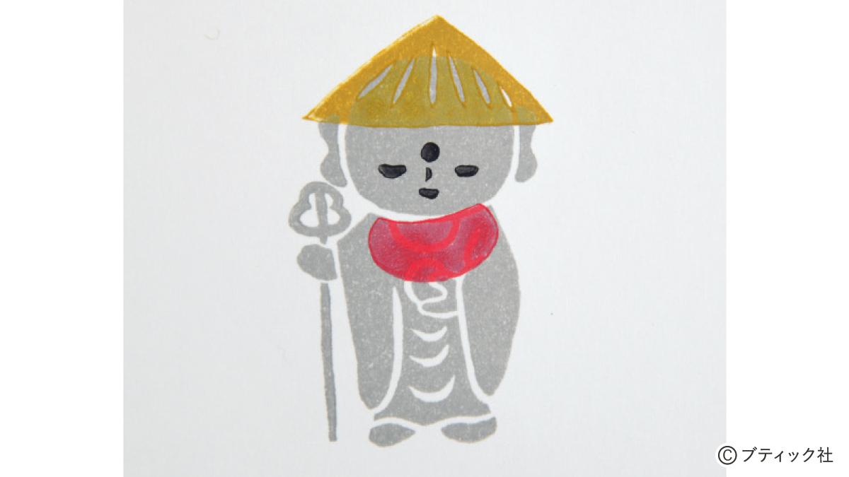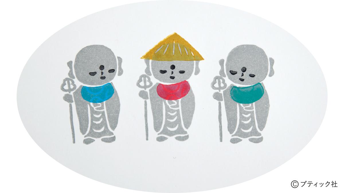 Instagramで大人気の「僧侶と消しゴムハンコ」麻田弘潤さんの著者本から、作品「お地蔵さま」をご紹介。インクの色合いによって印象が変わります。ほっこりした気持ちになれますよ。