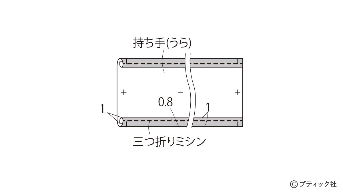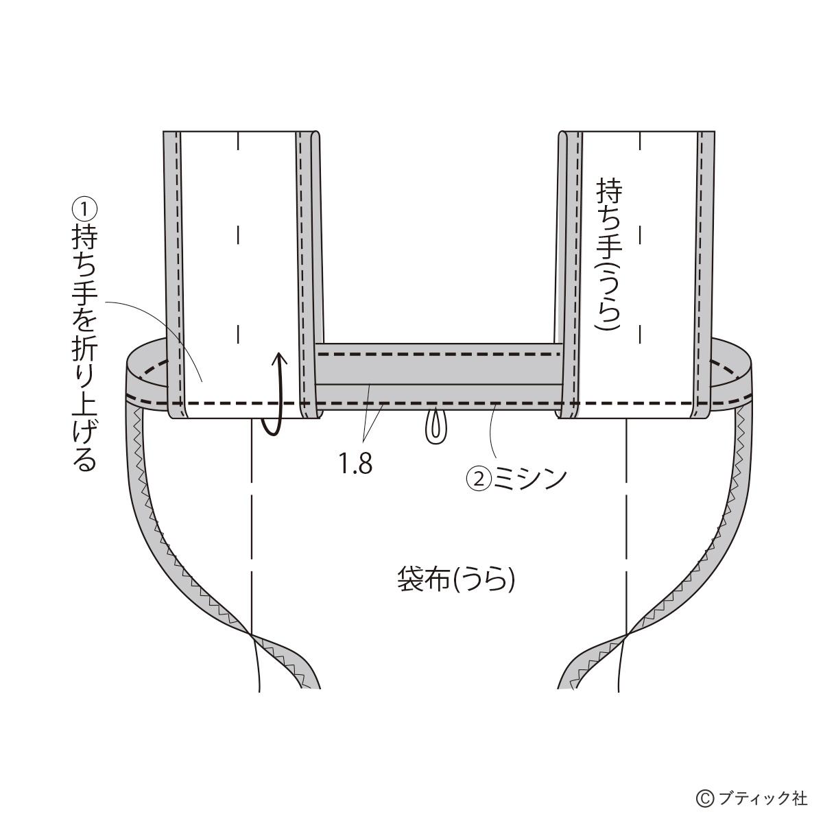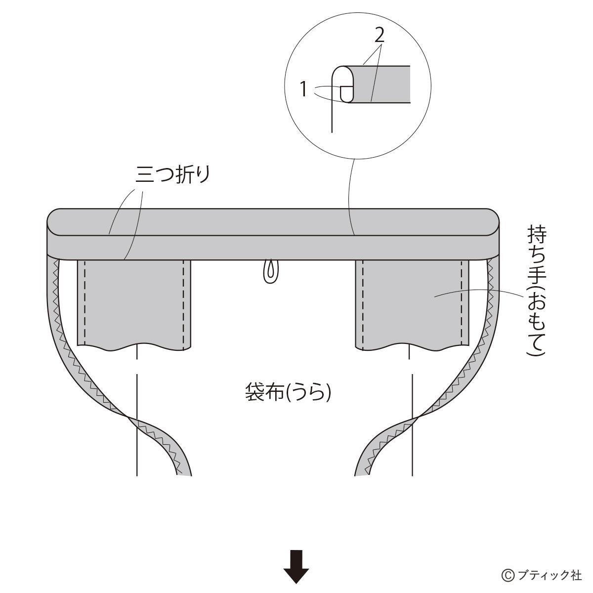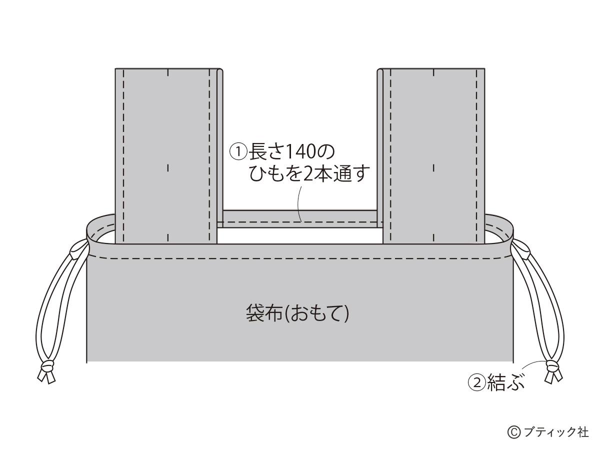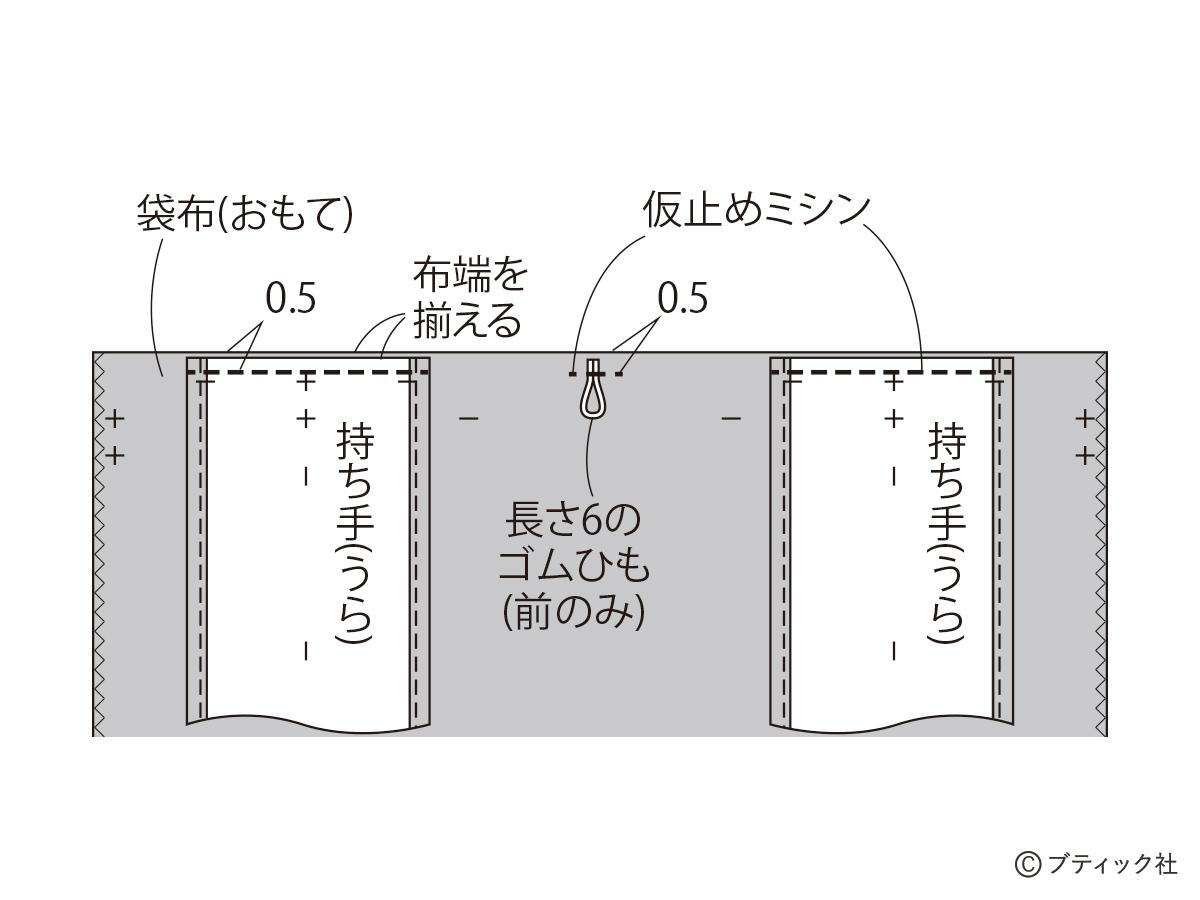 02 持ち手、ゴムひもをつける