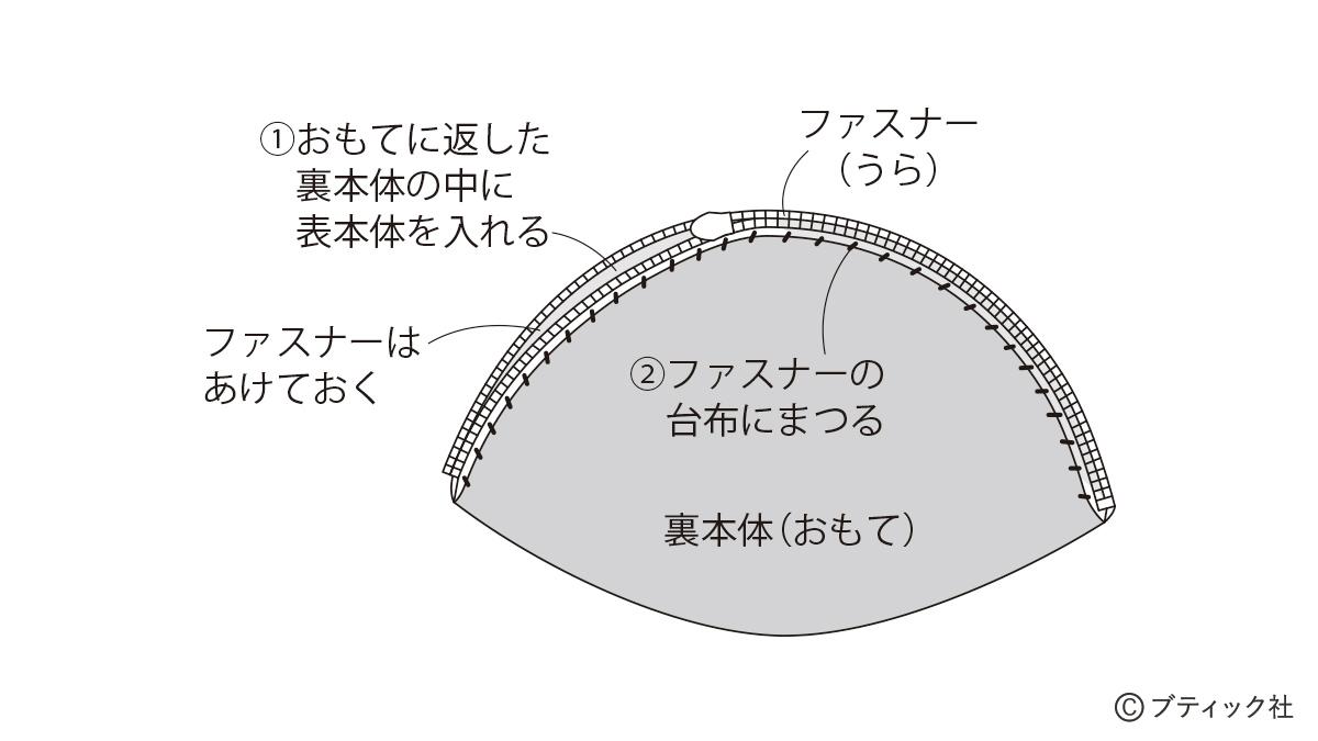 ※ファスナーの端の始末の仕方は後述参照