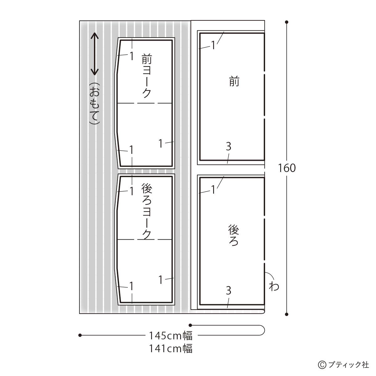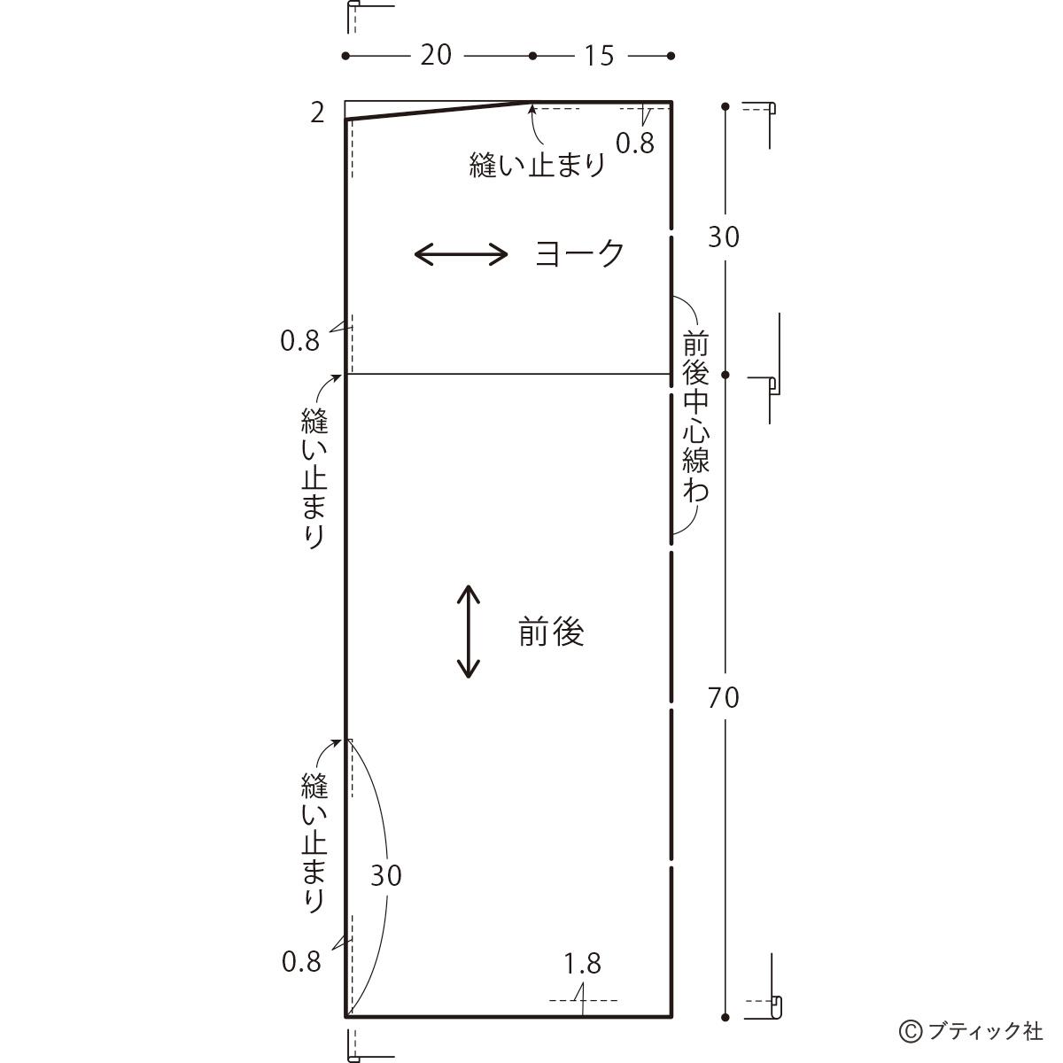 *実物大の型紙がついていません。紙に製図するか、布に直接書いて裁ちます。