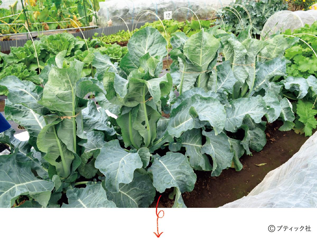 ブロッコリー、カリフラワー、キャベツの垂直仕立て栽培のコツを道法さんと池田さんに教わります。育ちがよくなり、害虫被害が減り、なによりもおいしさがアップします。