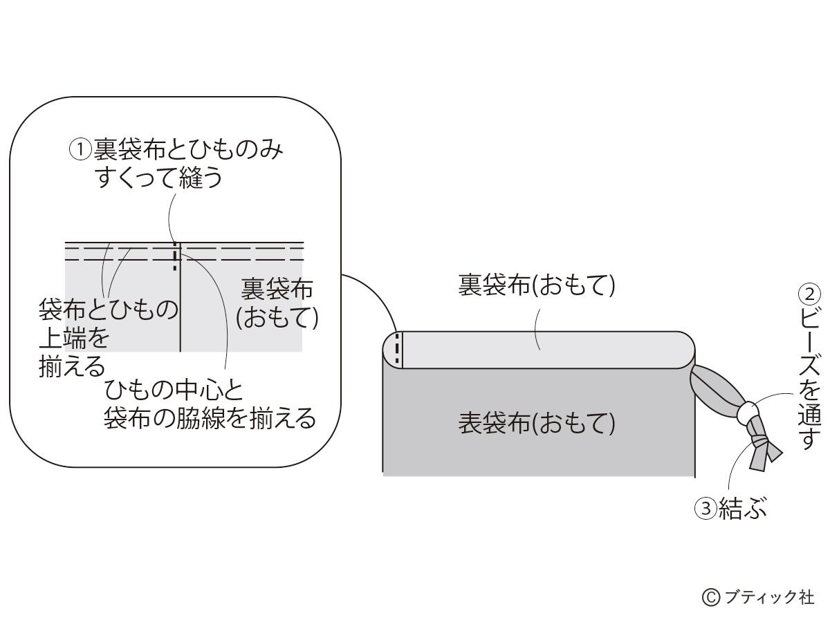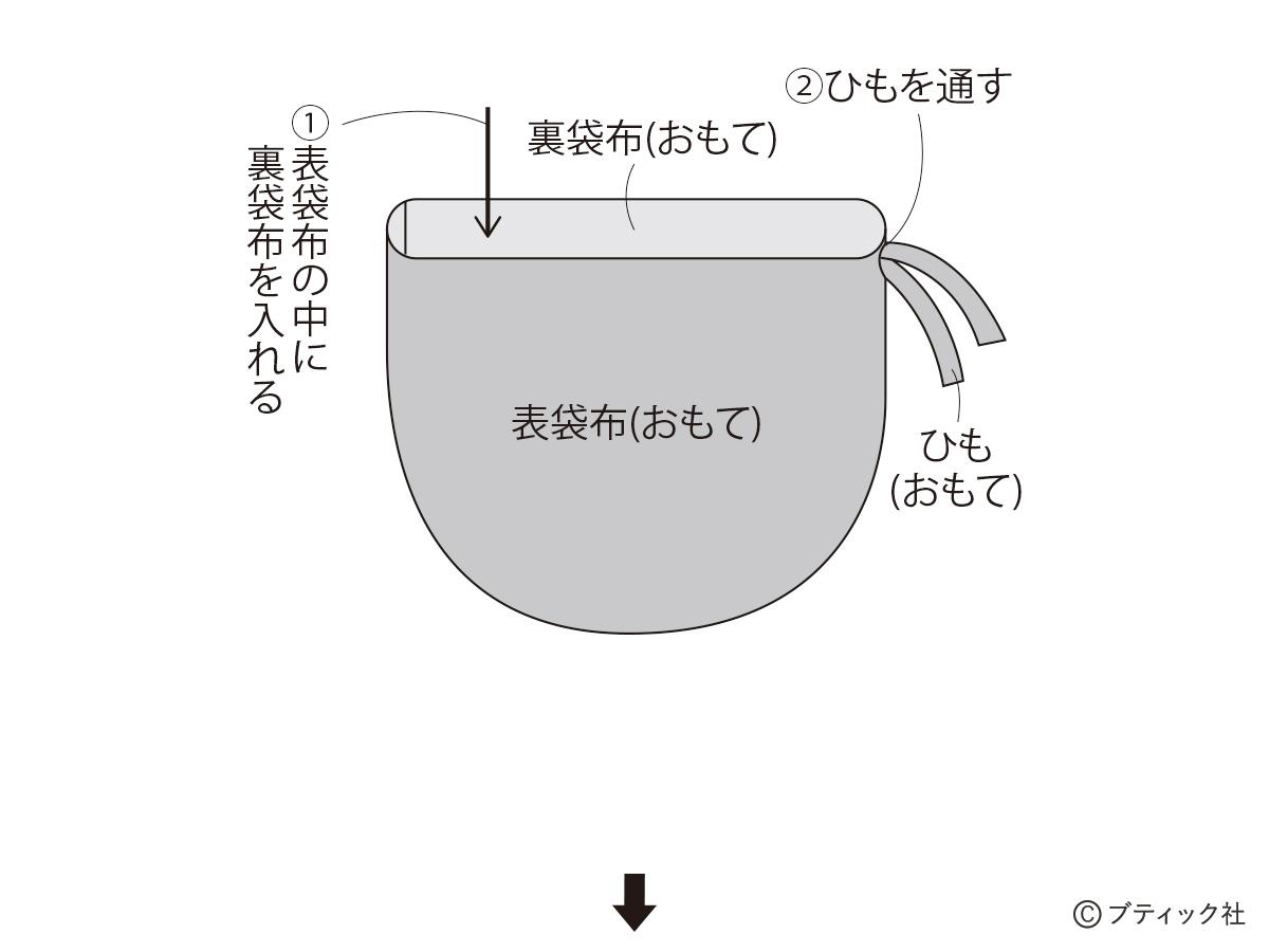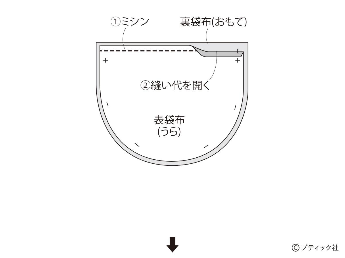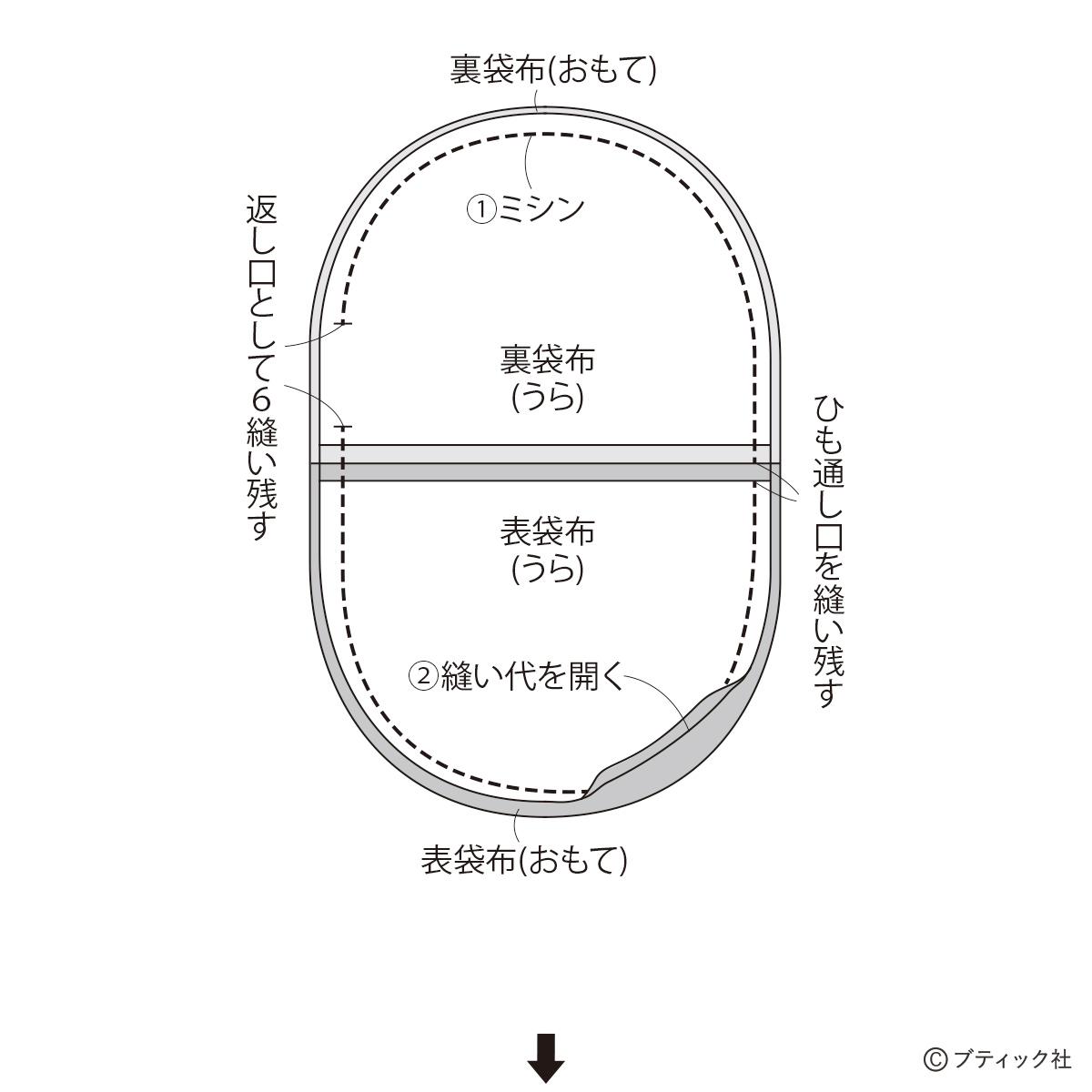 02 表袋布と裏袋布を縫い合わせる