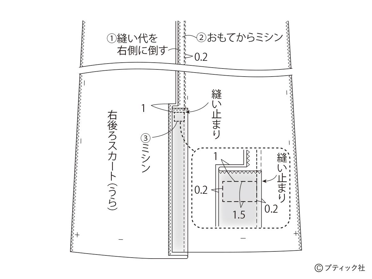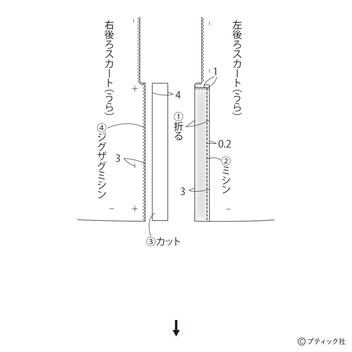 ※縫い始める前に布端にジグザグミシンをかける (脇線、後ろ中心線、脇ポケット)。