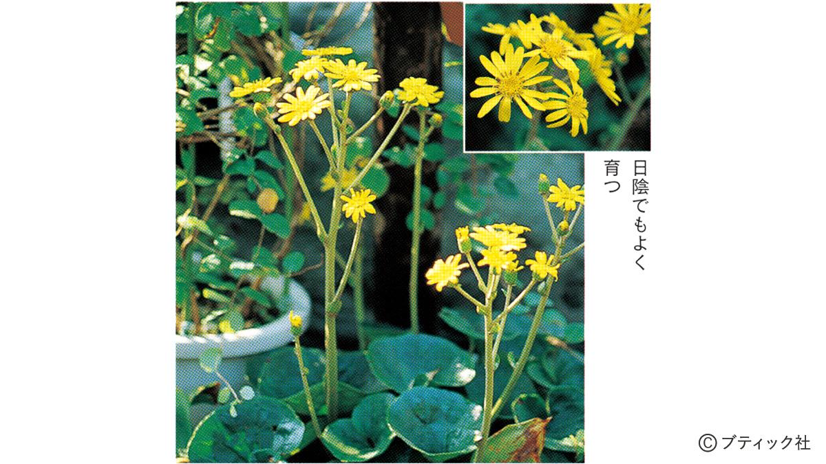 昔から日本で親しまれてきたツワブキ。秋に咲く花だけでなく、独特の形の葉も、庭の下草として利用されます。最近は斑入りの葉をもつ品種もあります。ちなみにキャラブキという佃煮は、ツワブキで作られています。