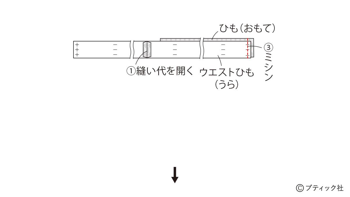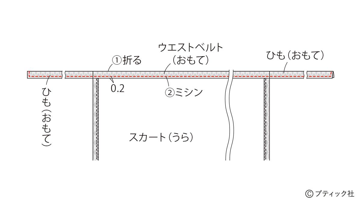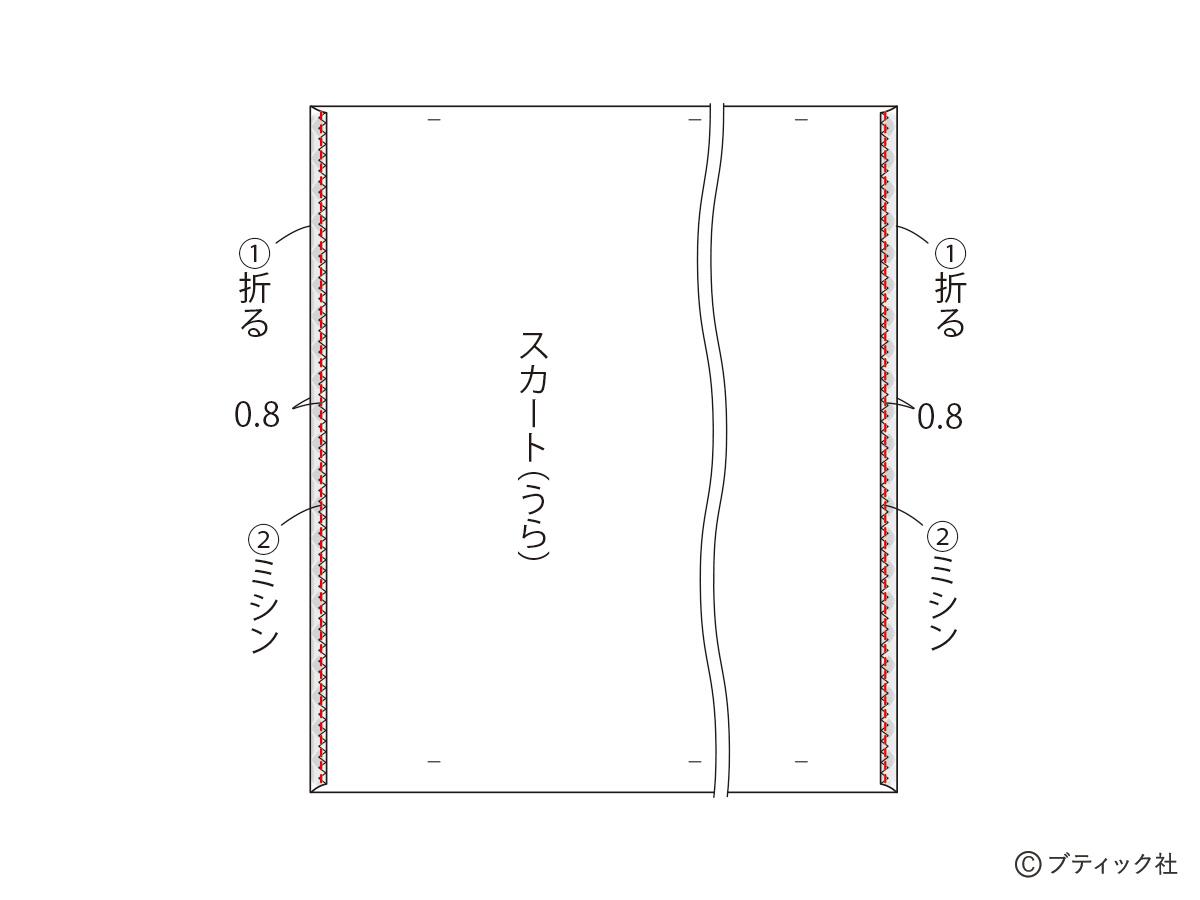 ※縫い始める前に布端にジグザグミシンをかける(脇線)。