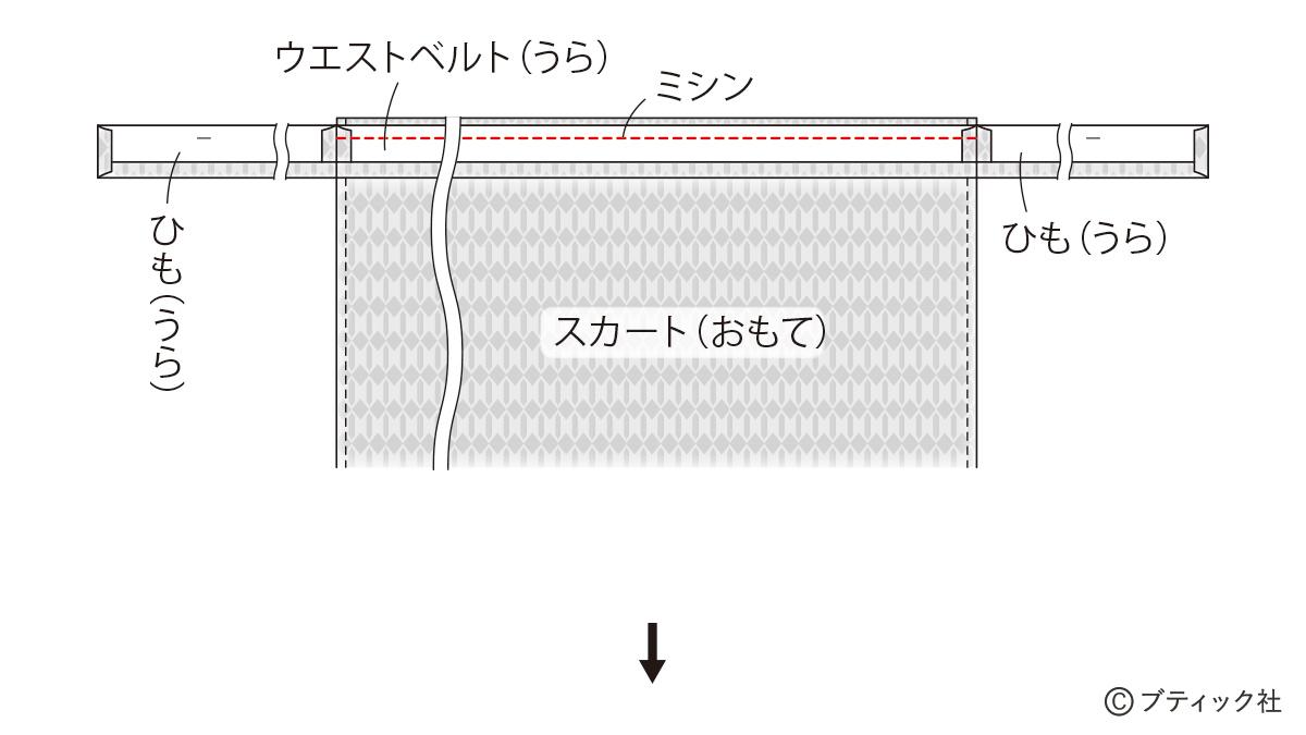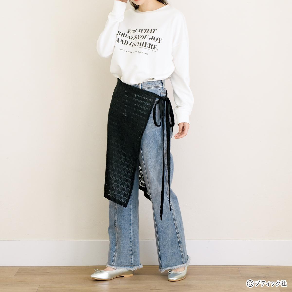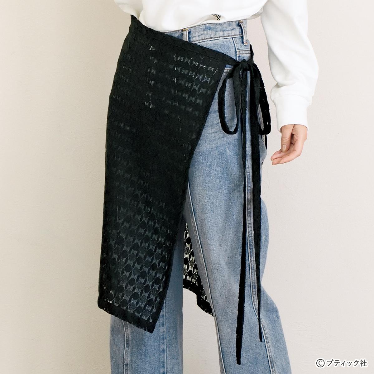 今作りたい、流行アイテムのオーバースカート。ボトムにレイヤードするだけで今っぽいコーデが完成するアイテムです。四角くカットしたパーツとひもだけでかんたんに作れるのが魅力!