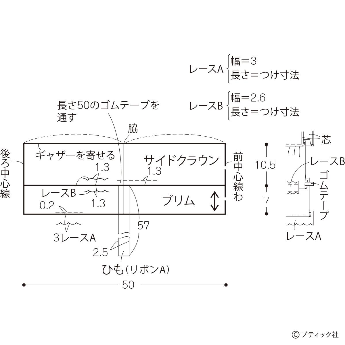 【サイドクラウン、ブリム、ひも(リボンA)】