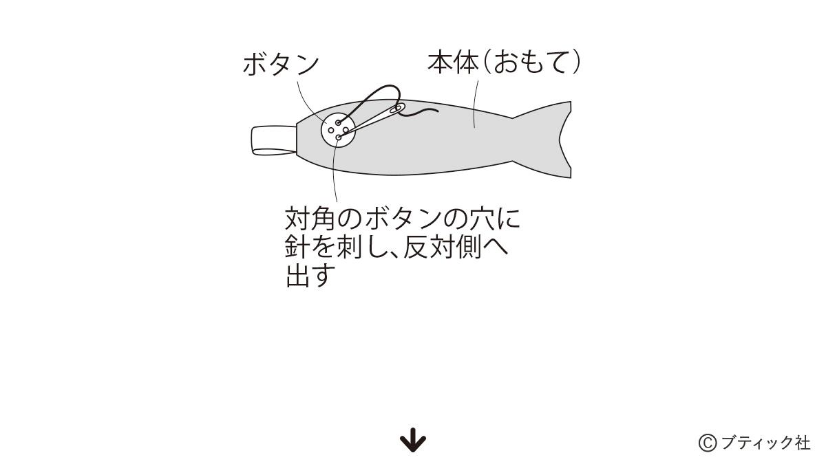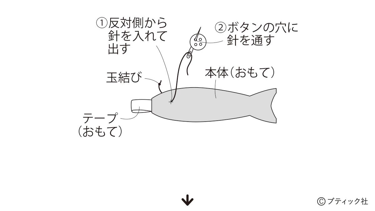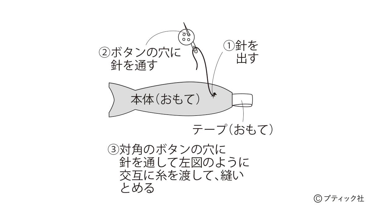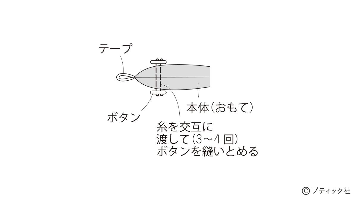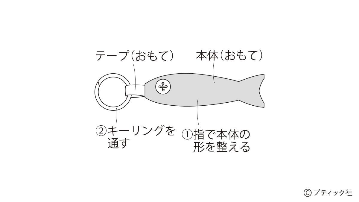 ボーダー柄の生地を生かして新鮮な秋刀魚を作りました。ボタンで再現した目がユニークで、思わずくすっと笑えます。リングに鍵を通したり、バッグに着けたり、お好みでお使いください♪