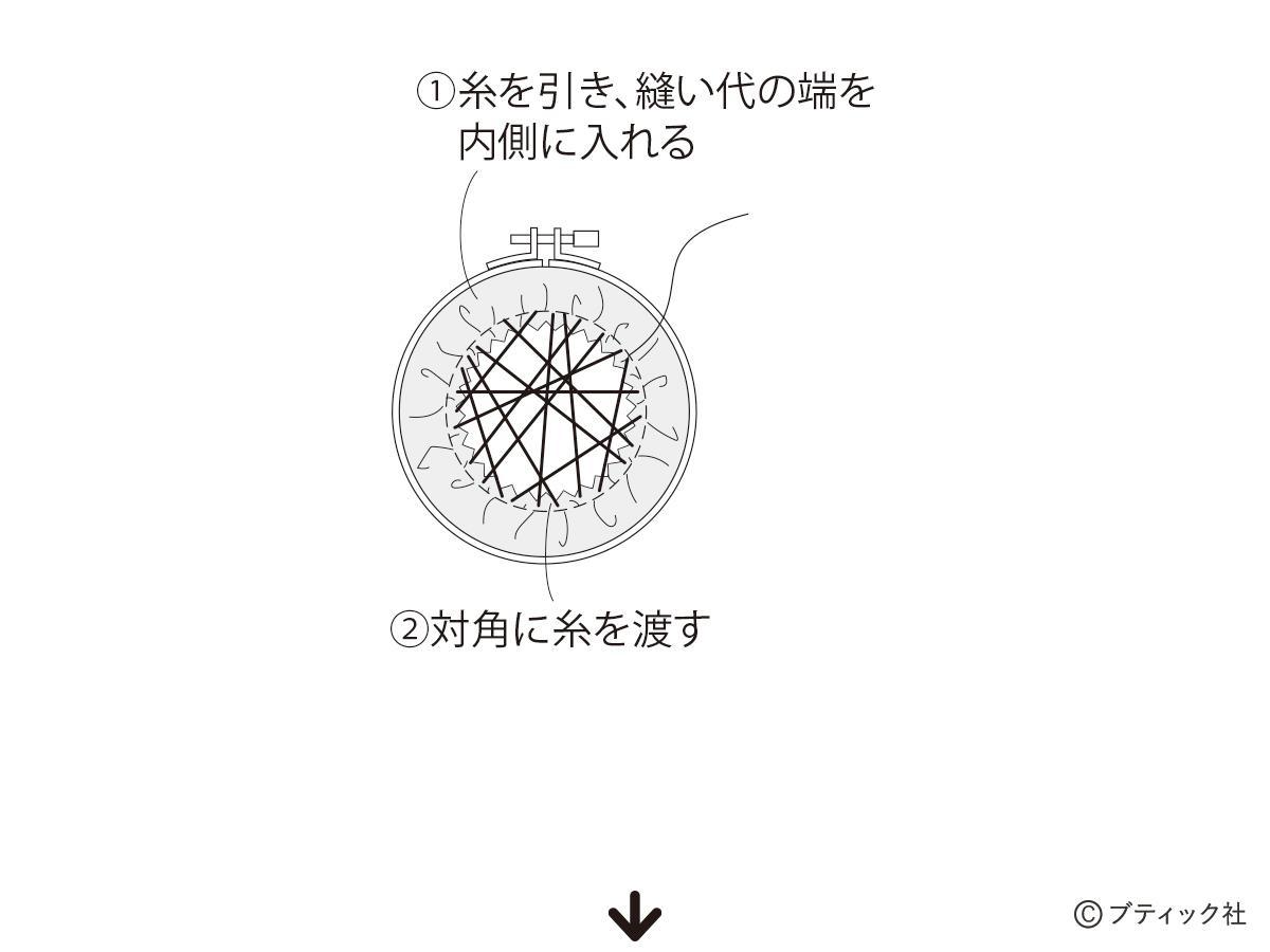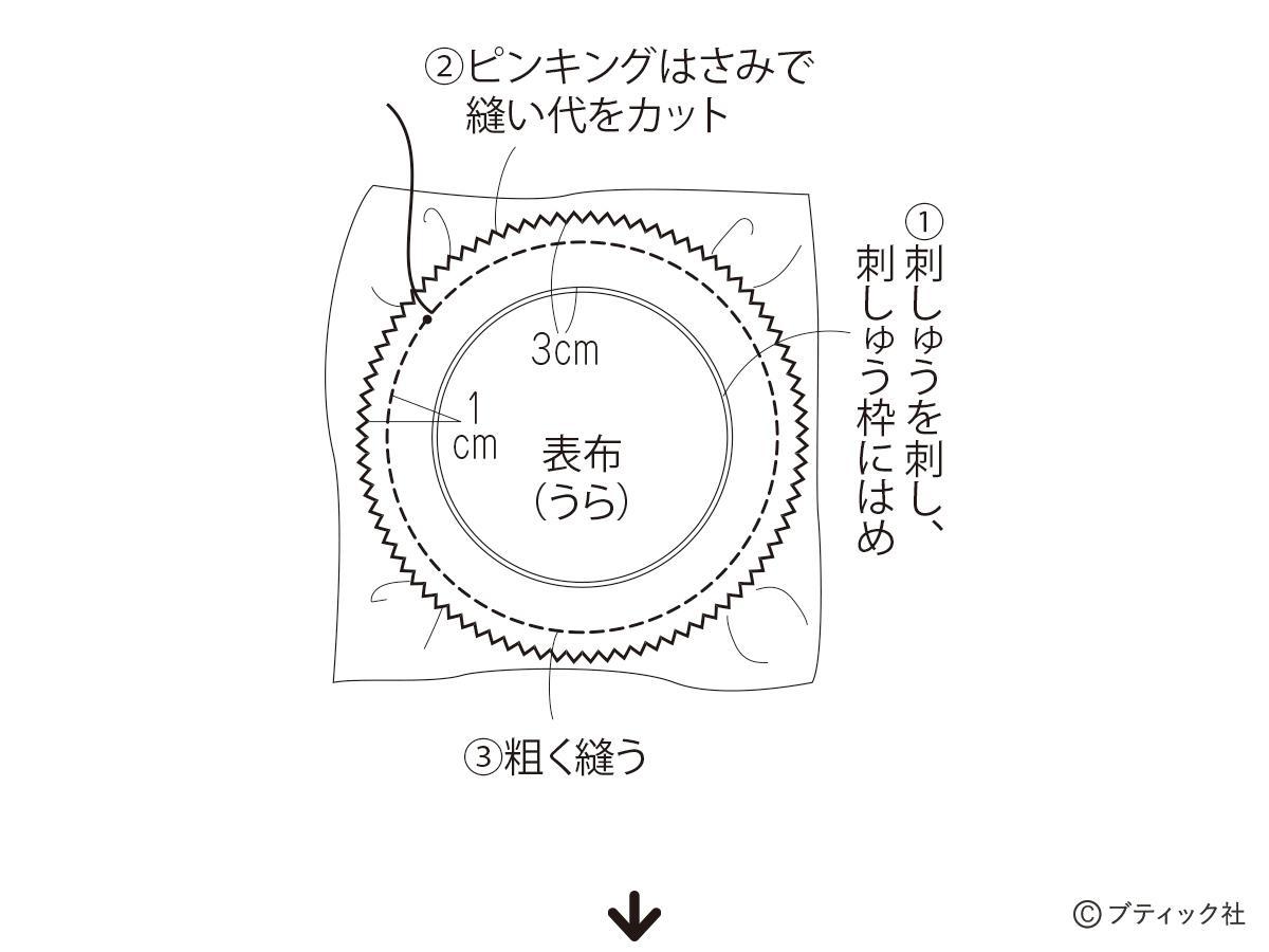 ①刺しゅうを刺し、刺しゅう枠にはめ