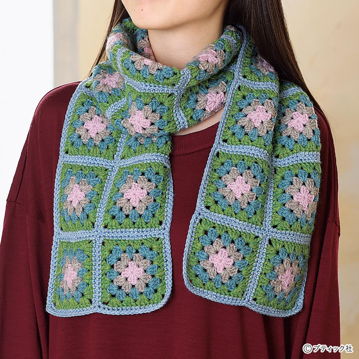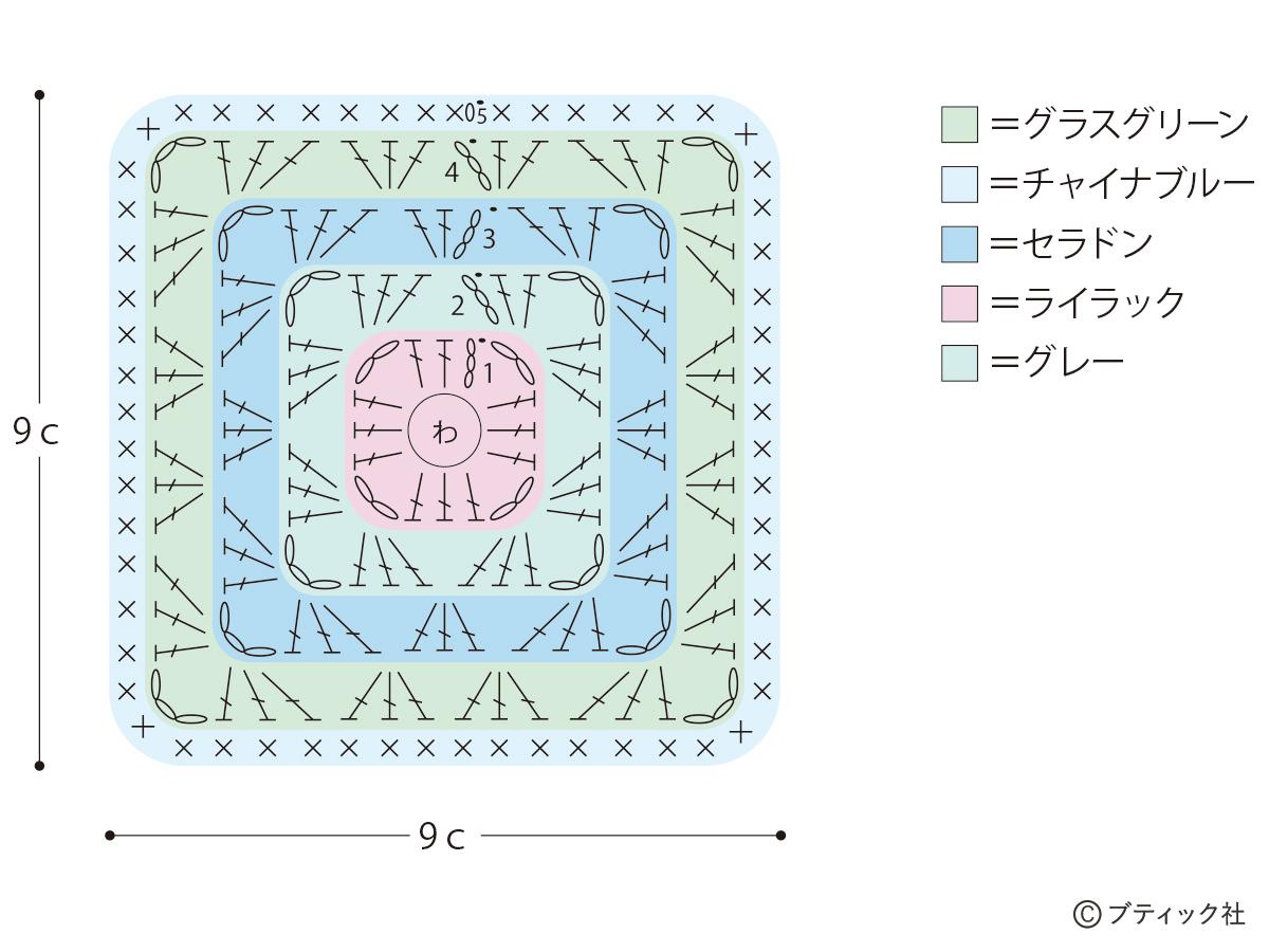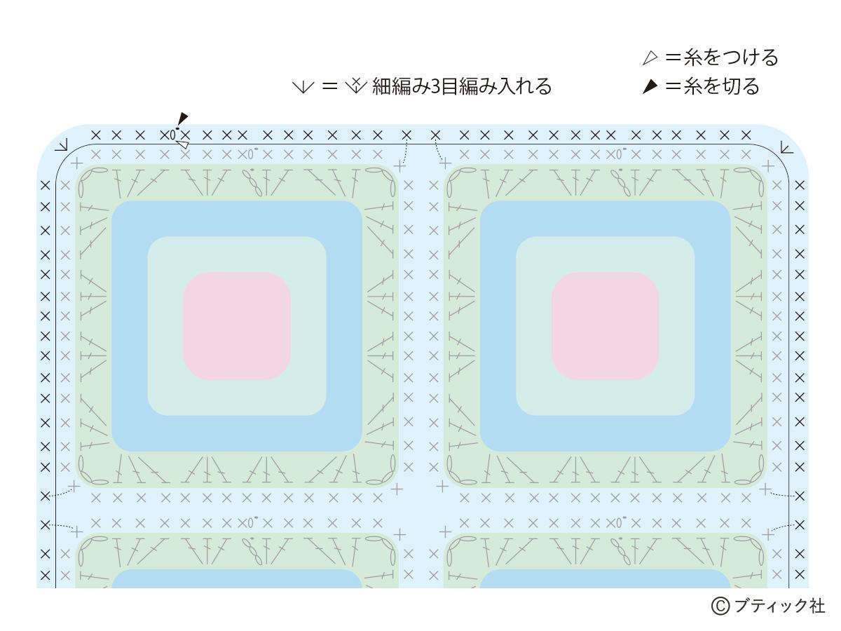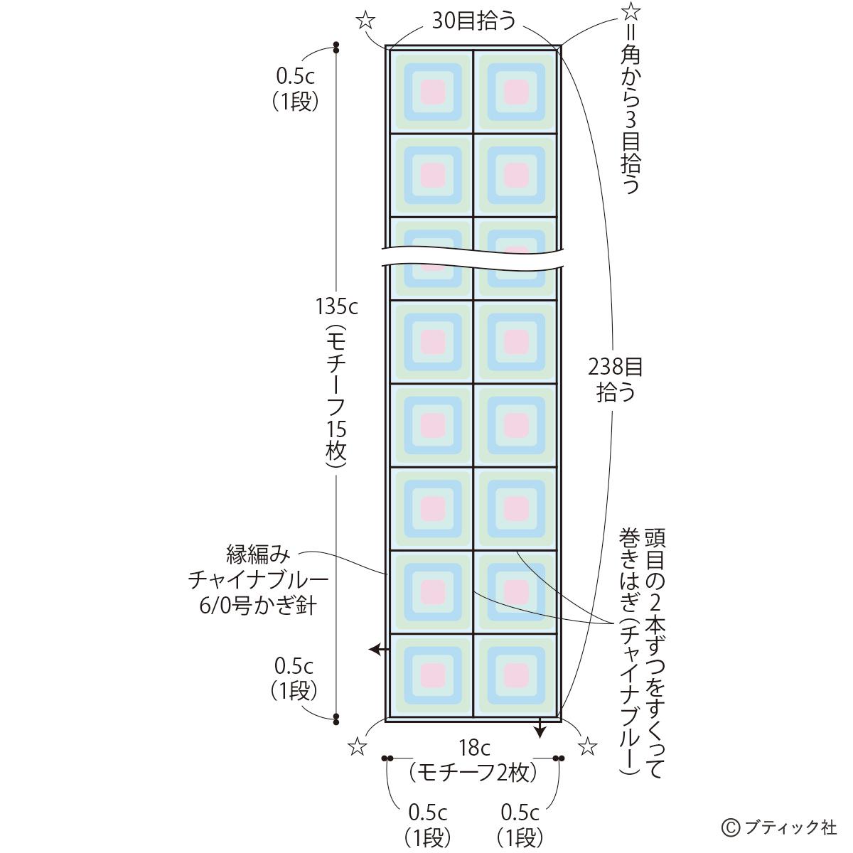 02 モチーフを図のように並べ、巻きはぎでつなぎます。
