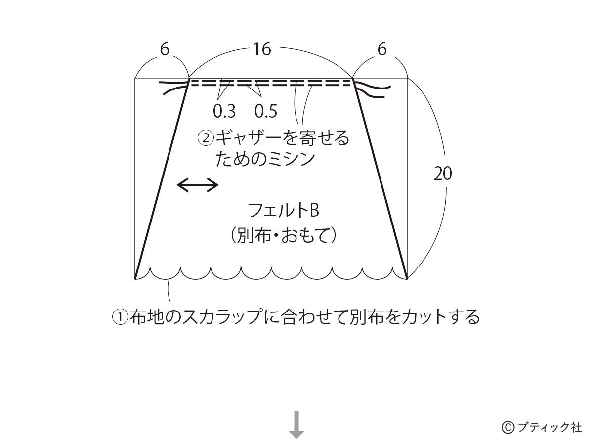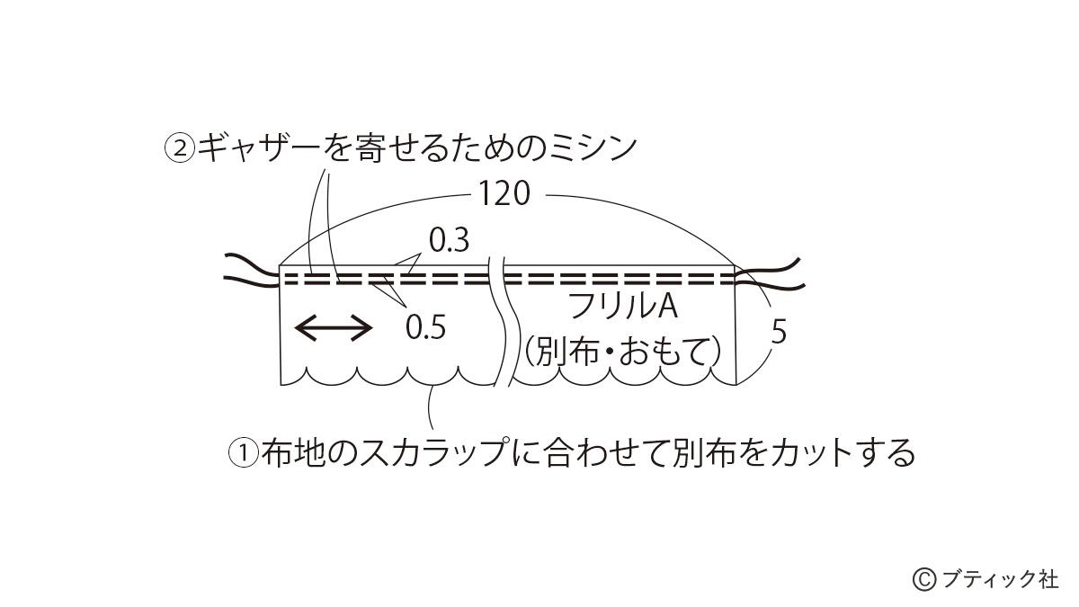 ※ギャザーを寄せるためのミシンのやり方は後述参照