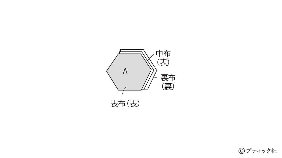 ○A~Cの布は縫い代を1cm付けて裁つ。