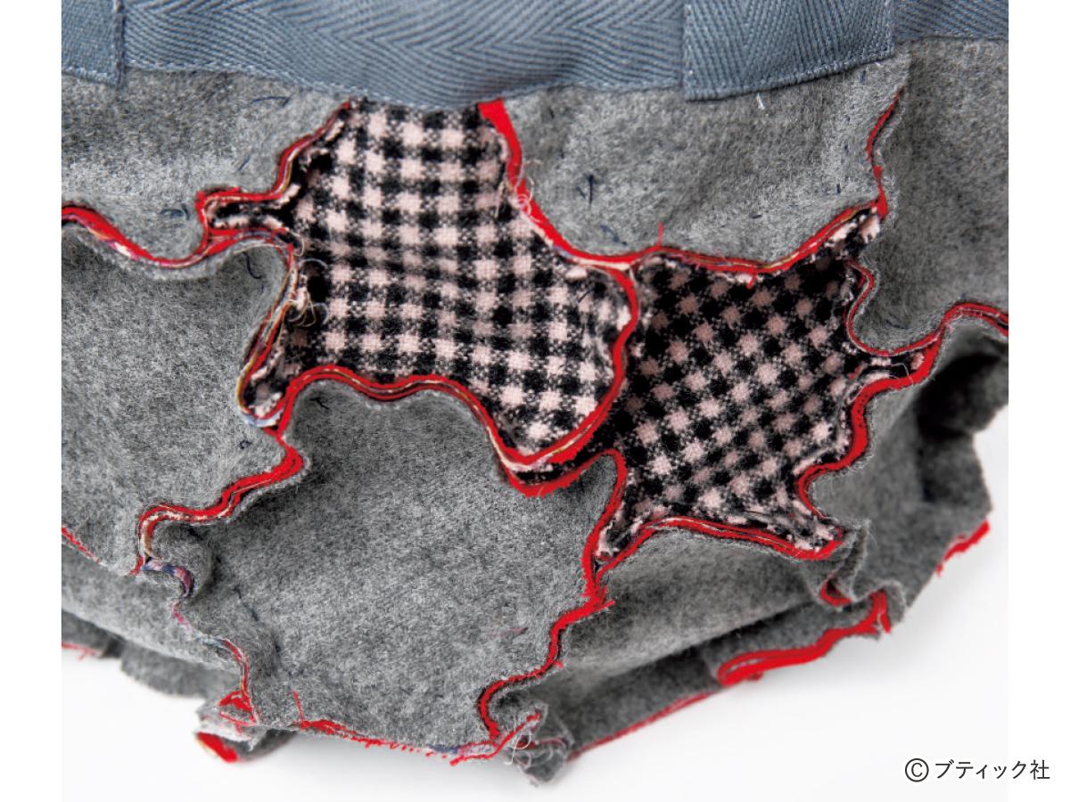 ○重ねた布がずれる場合は、軽くボンドで留めるかしつけをしてから縫う。