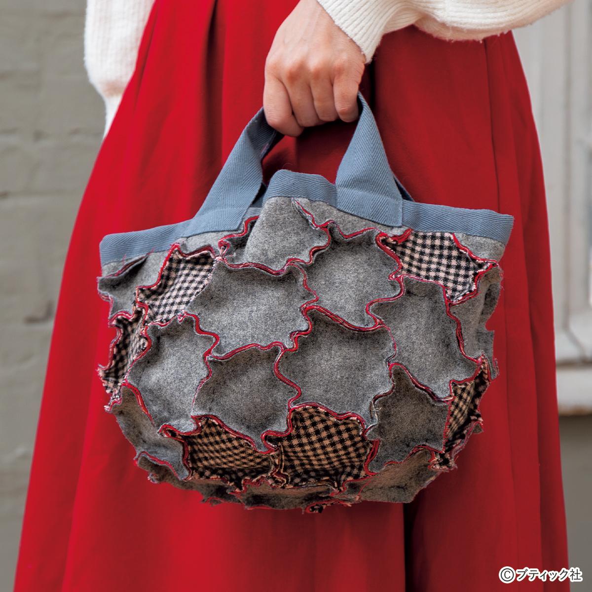 2枚目にはさんだ赤の無地がチラリとのぞいてアクセントになります。縫い代のほつれがいい味わいに。