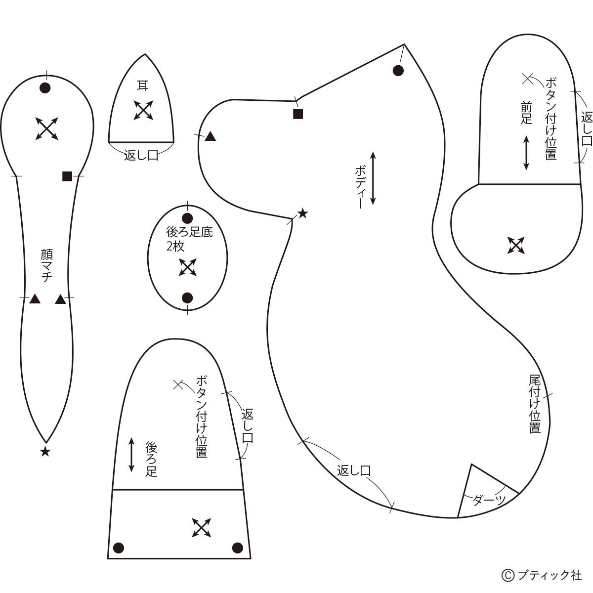 ・ボディー用布 30×40cm(足の上部、外耳分含む 白馬は顔マチ分含む)
