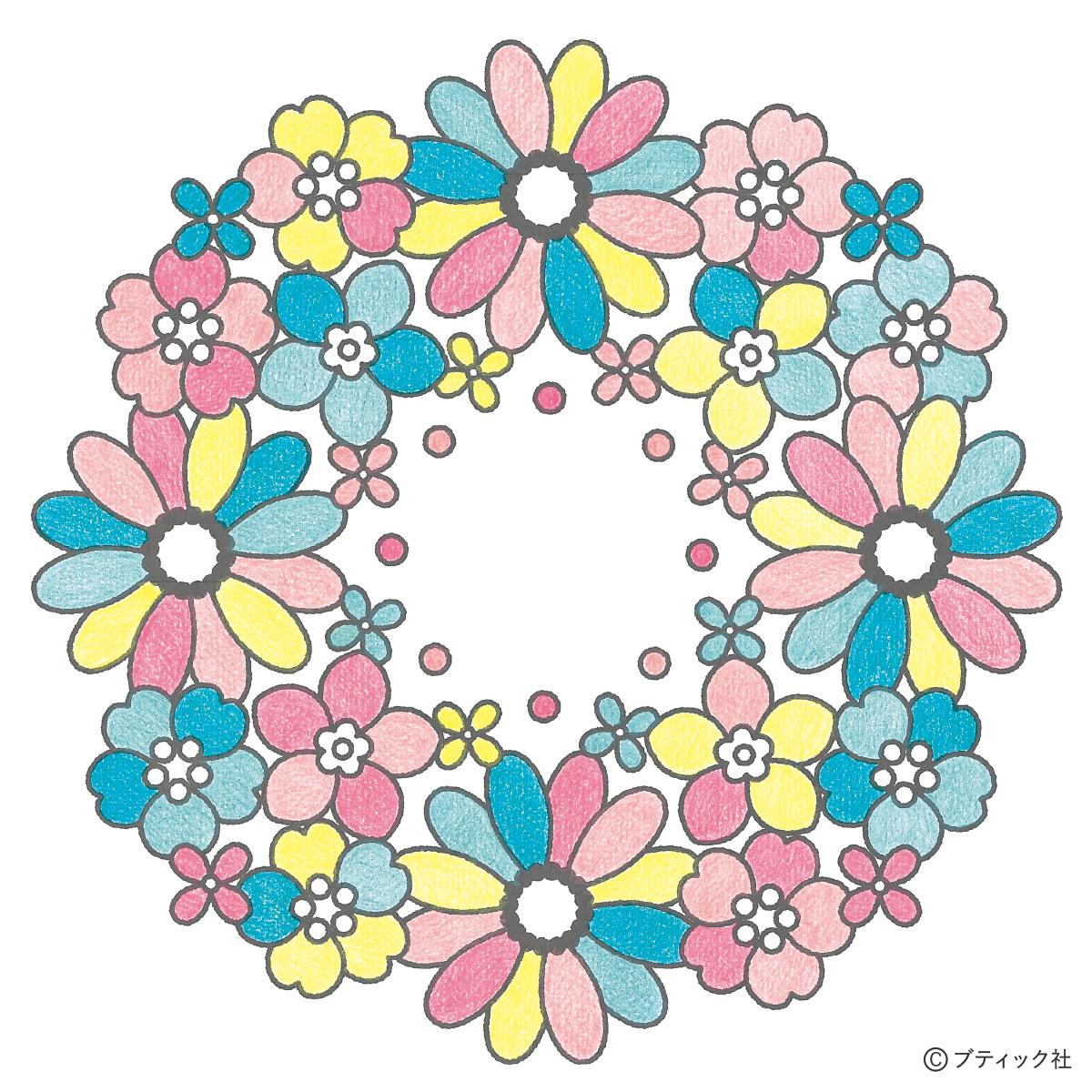 集中力や想像力のアップが期待できる、楽しく脳を育てる「マンダラぬりえ」!ここでは、いろいろな大きさ・形の花を塗ってみましょう!好きな色で塗るもよし、見本通り塗るもよし!