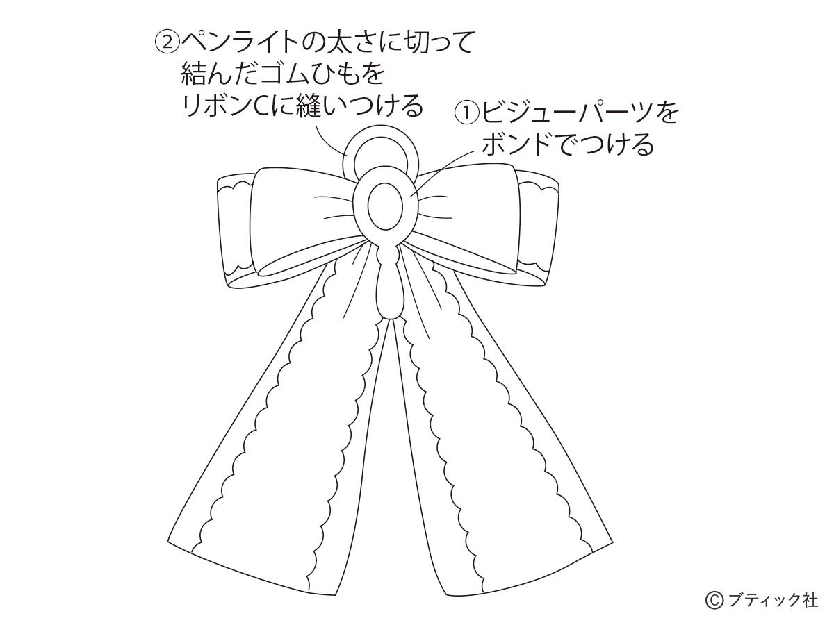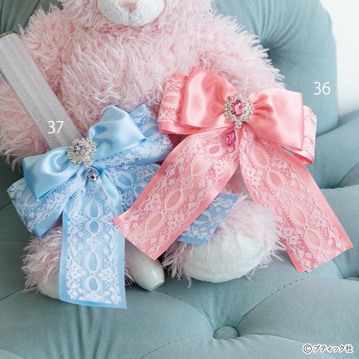 推し活に欠かせない、キラキラビジューがアクセントになったペンラデコリボン!太幅のサテンリボンとレース風のリボンを組み合わせたゴージャス仕様です。リボンの後ろにつけたゴムをペンライトにつけて使います。