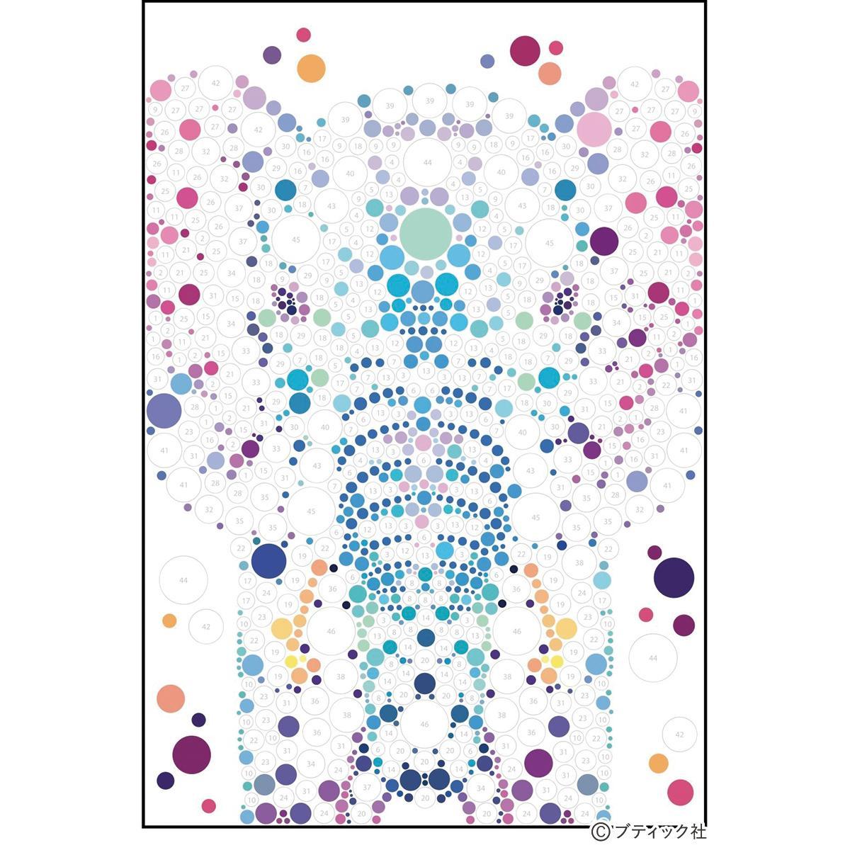 イラストは、さまざまなサイズの”丸”で構成されています。 その中には、色がついている丸や、数字が書かれている丸があります。