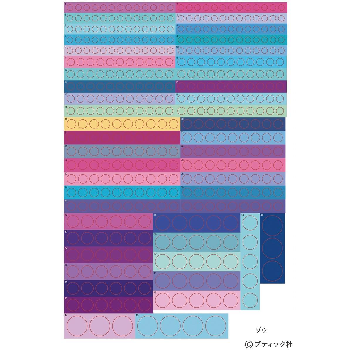 色つきの丸と、あなたが貼るシールが一体となって、美しい作品が生まれます。