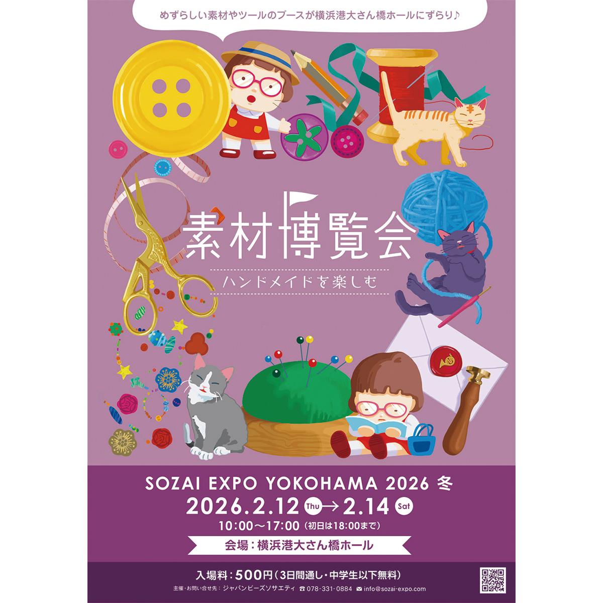 2026年2月12日(木)~2月14日(土)まで、ハンドメイド素材の未知なる魅力と出会える「素材博覧会」が、横浜港大さん橋ホールで開催されます。