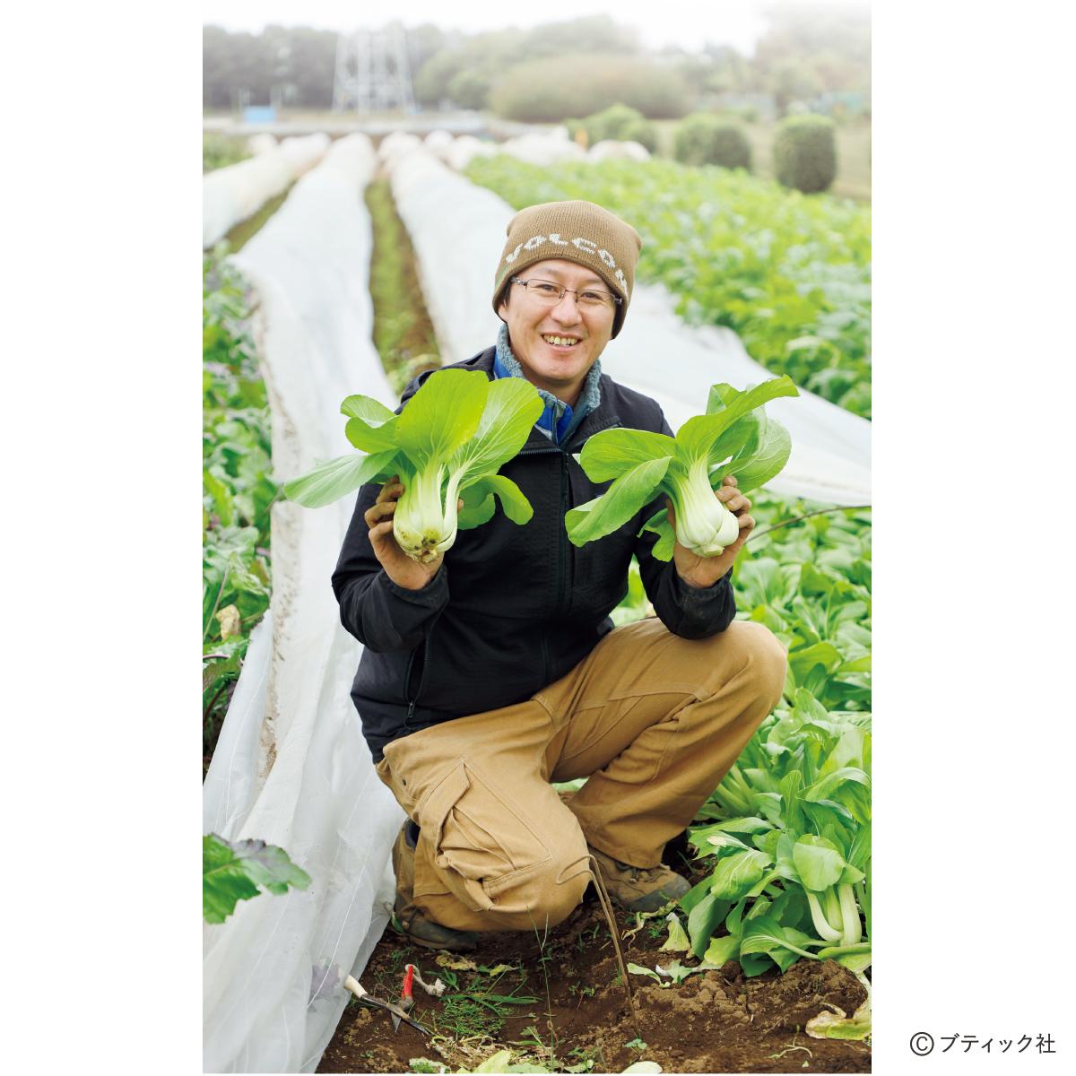 あかしせいいち●埼玉県入間郡三芳町で「明石農園」を営む。5.4ヘクタール(約54,000m2)の畑で、無農薬・無肥料自然栽培で年間約60品種の野菜を育てている。2003年に就農したときは、有機栽培からスタートし、2005年頃、自然栽培に転換。就農支援や援農も受け入れ、農業体験スクール「ソラシド」の講師も務める。『お百姓さんになりたい』(2019年・原村政樹監督)は明石農園を取材したドキュメンタリー映画。