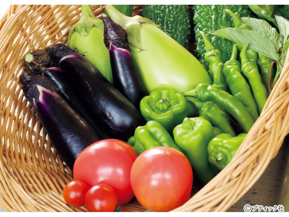 堆肥や肥料を入れずに育てた明石農園の夏野菜。土のちからだけで育てるからこそ、土質や水はけの良し悪しなど自分の畑の環境や育てる野菜の品種やタネ、性質などをよく知ることが大切。