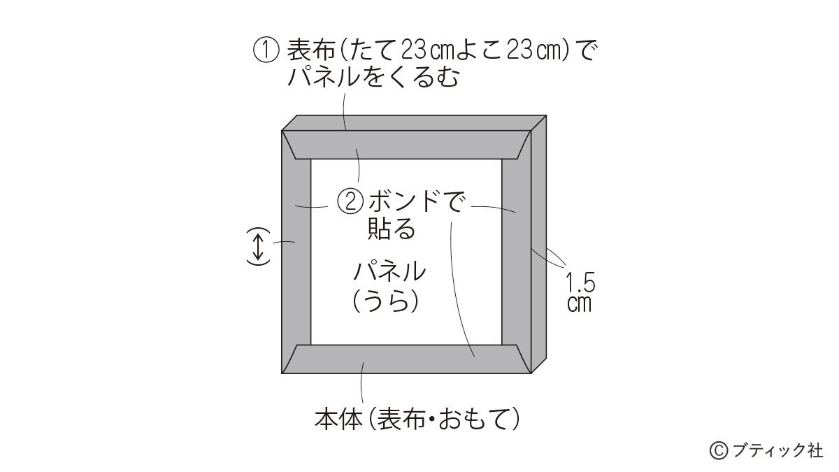 01 表布(たて23cmよこ23cm)でパネルをくるむ
