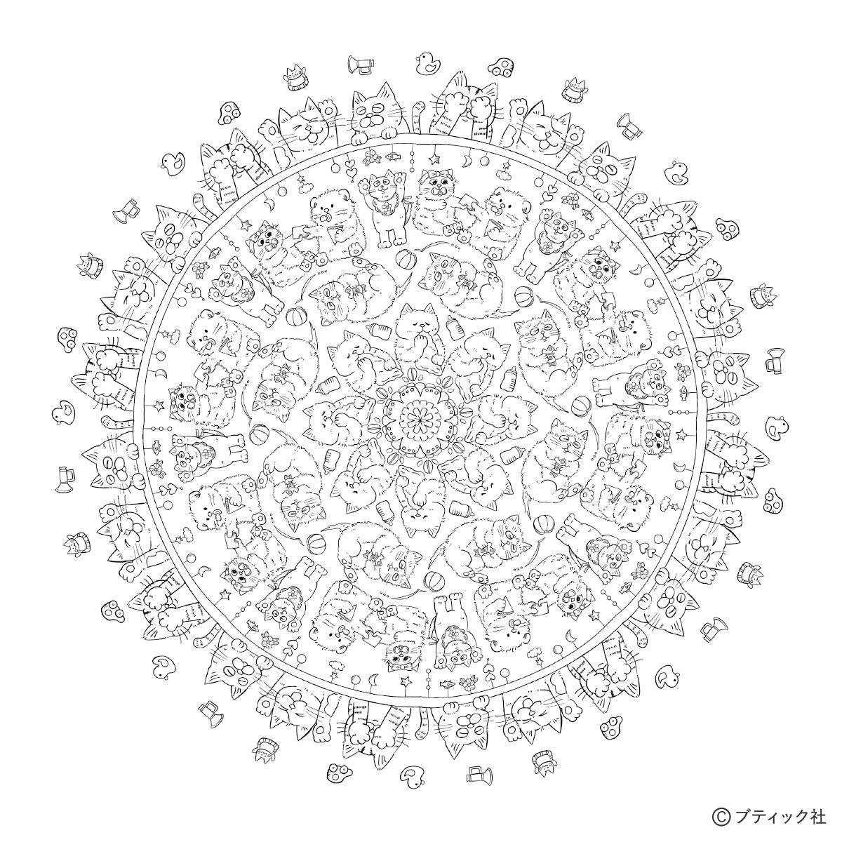 ねこだらけのマンダラぬりえ「Baby cats」